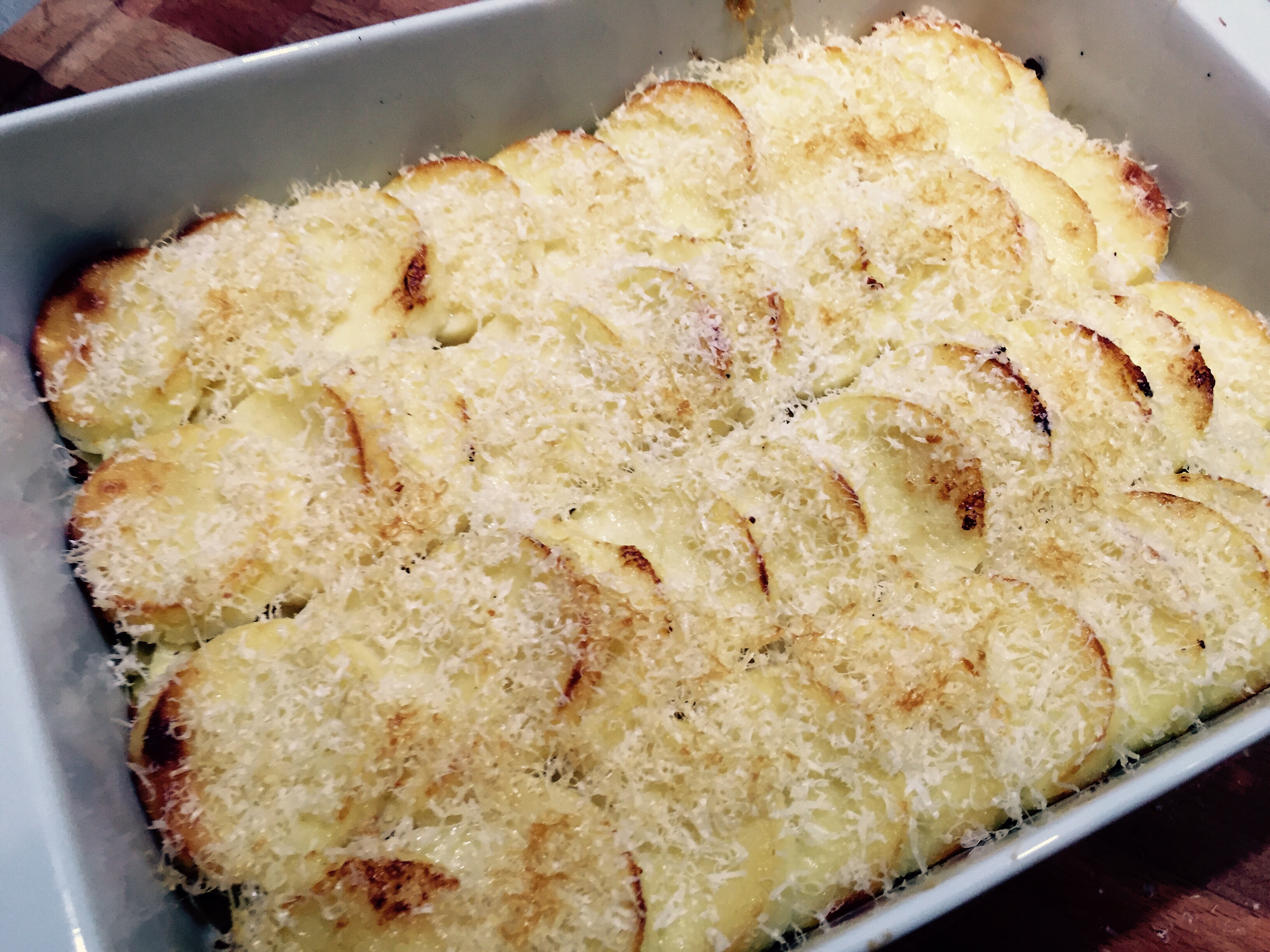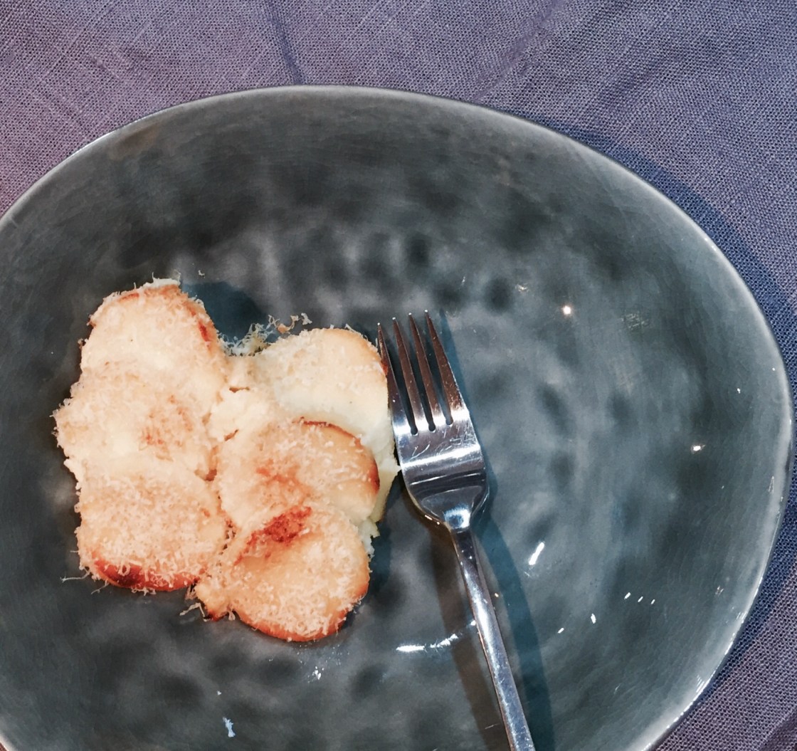 Mit Butterflocken und geriebenen Parmigiano im Ofen gratinieren.