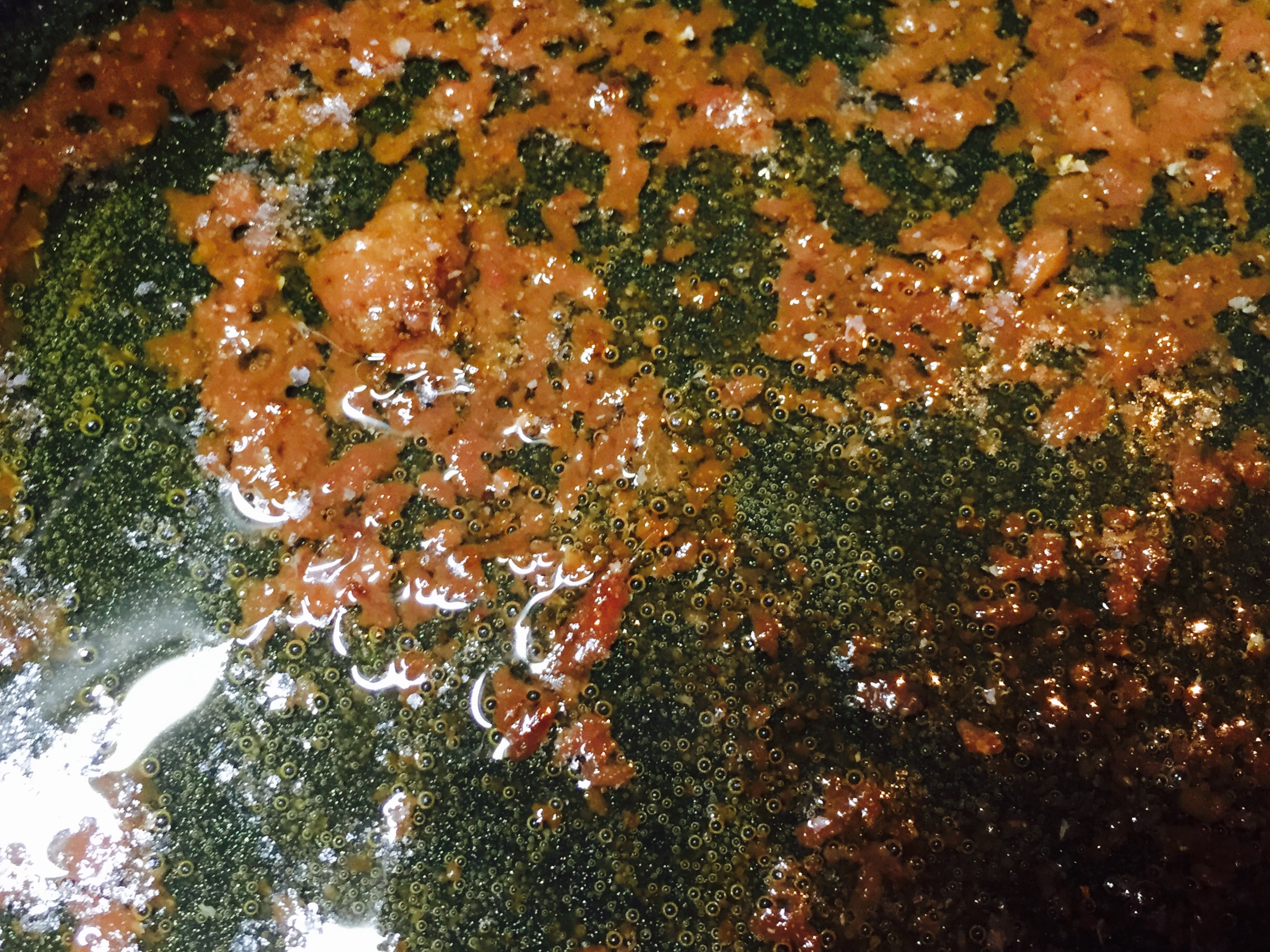 In der Zwischenzeit in einem Topf in Olivenöl die Sardellenfilet erwärmen.