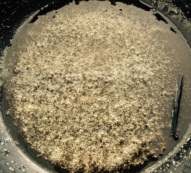 Etwas Sud zum Tränken des Boden beiseite geben, den Rest einkochen bis er karamellisiert ein Esslöffel Butter und die Mandelsplitter unterrühren. Den Mandelkrokant auf einem Butterpapier dünn auftragen.