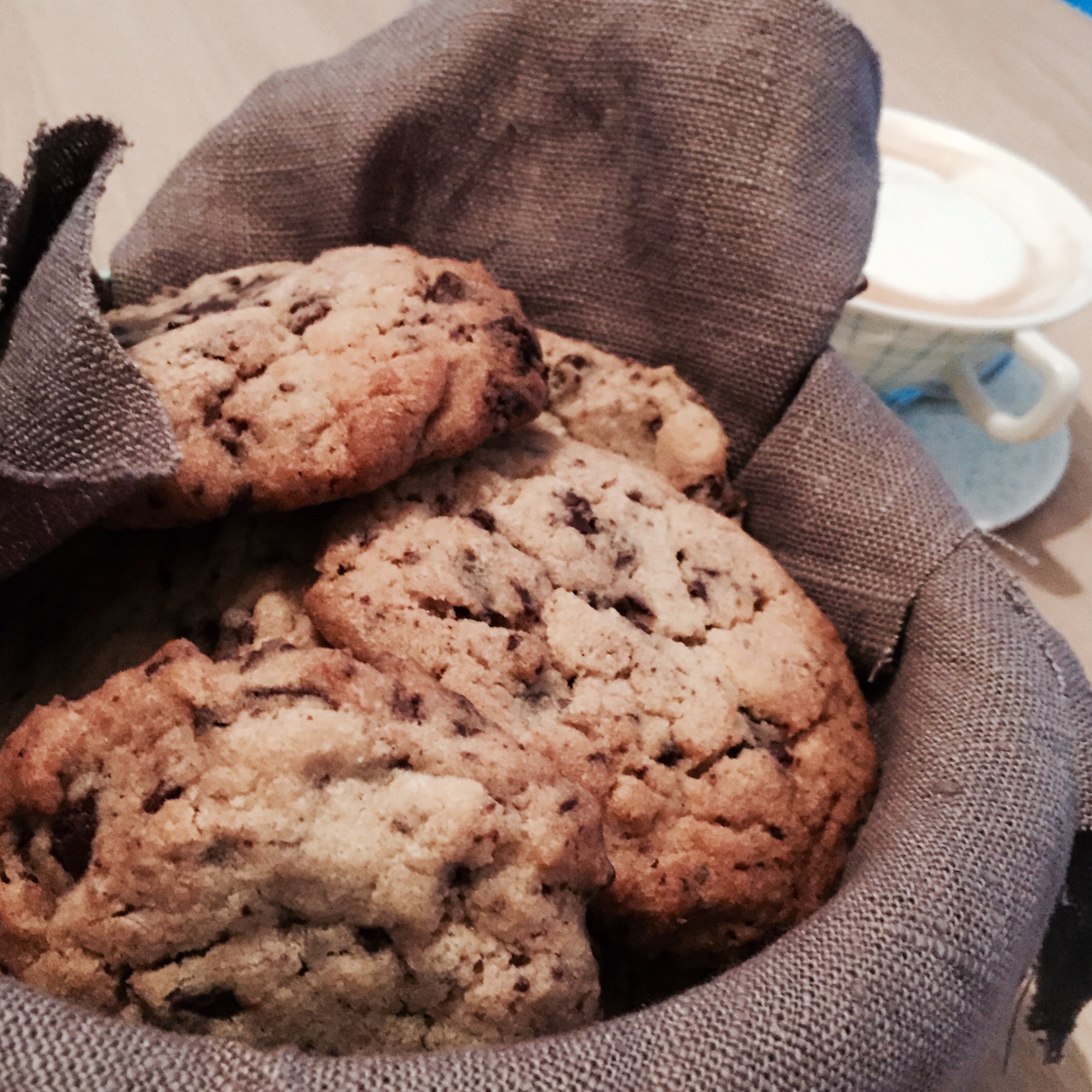 Die kalten Teigkugeln weit ausseinander auf ein Backblech legen und bei 175 Grad (vorgeheizt) ca. 17-20 Minuten bis die Ränder goldbraun sind backen.