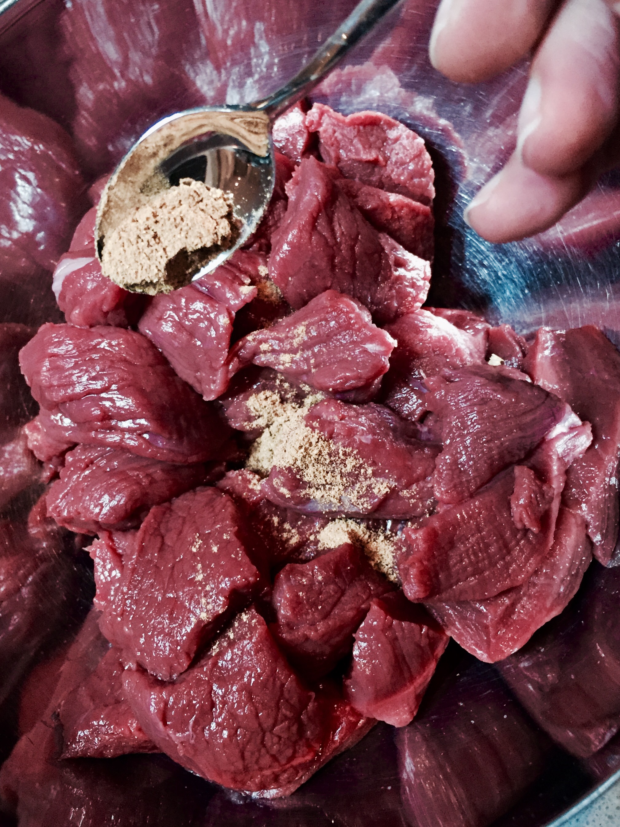 Das Fleisch mit dem Lebkuchengewürz und wenig Salz würzen.