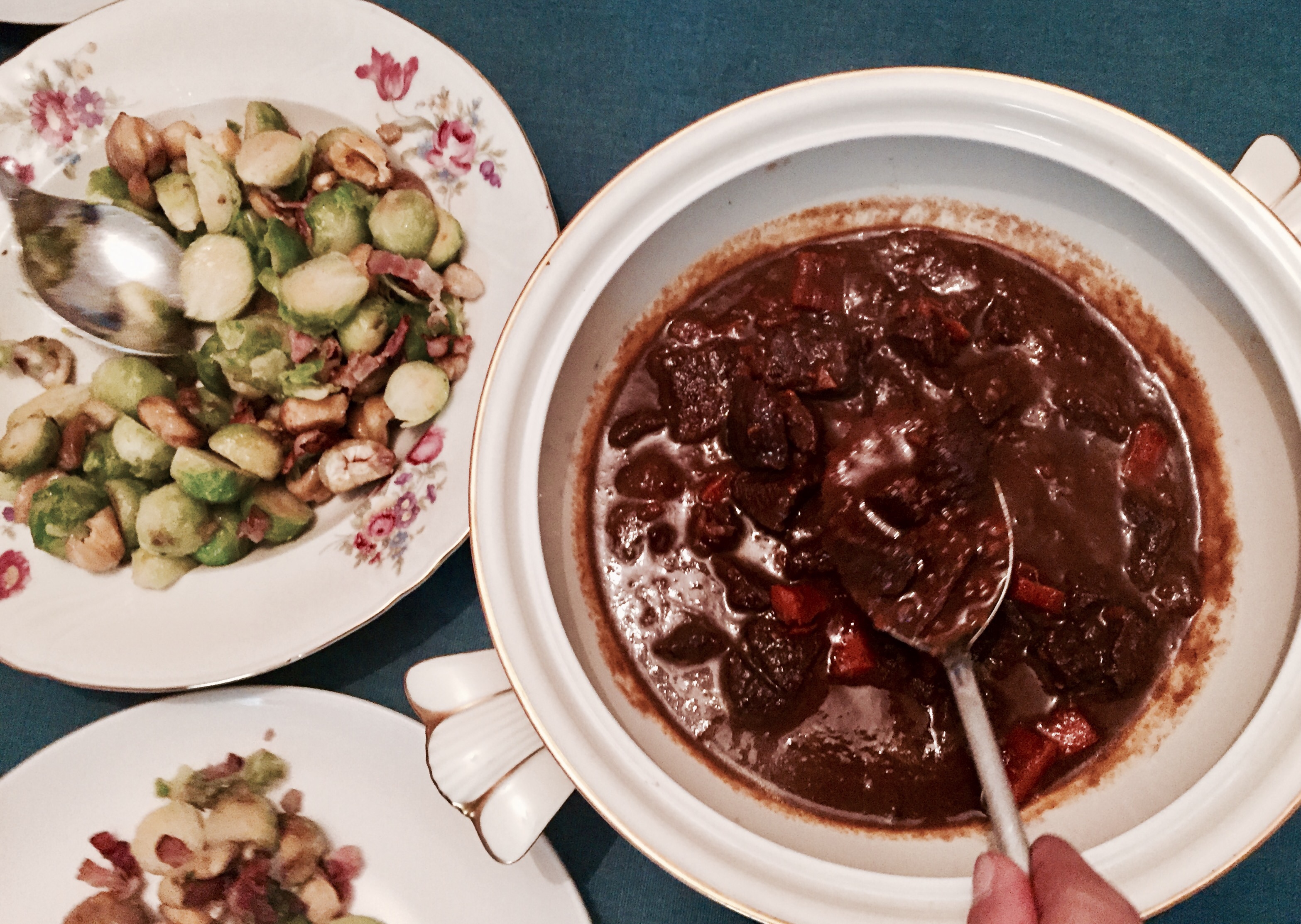 Alle Gewürze ausser der Vanilleschote und dem Lorbeer in einem Gewürzsäcken oder Teeei (bei mir) geben und dem Gulasch beigeben (das Lorbeerblatt und die Vanilleschote direkt dazugeben).