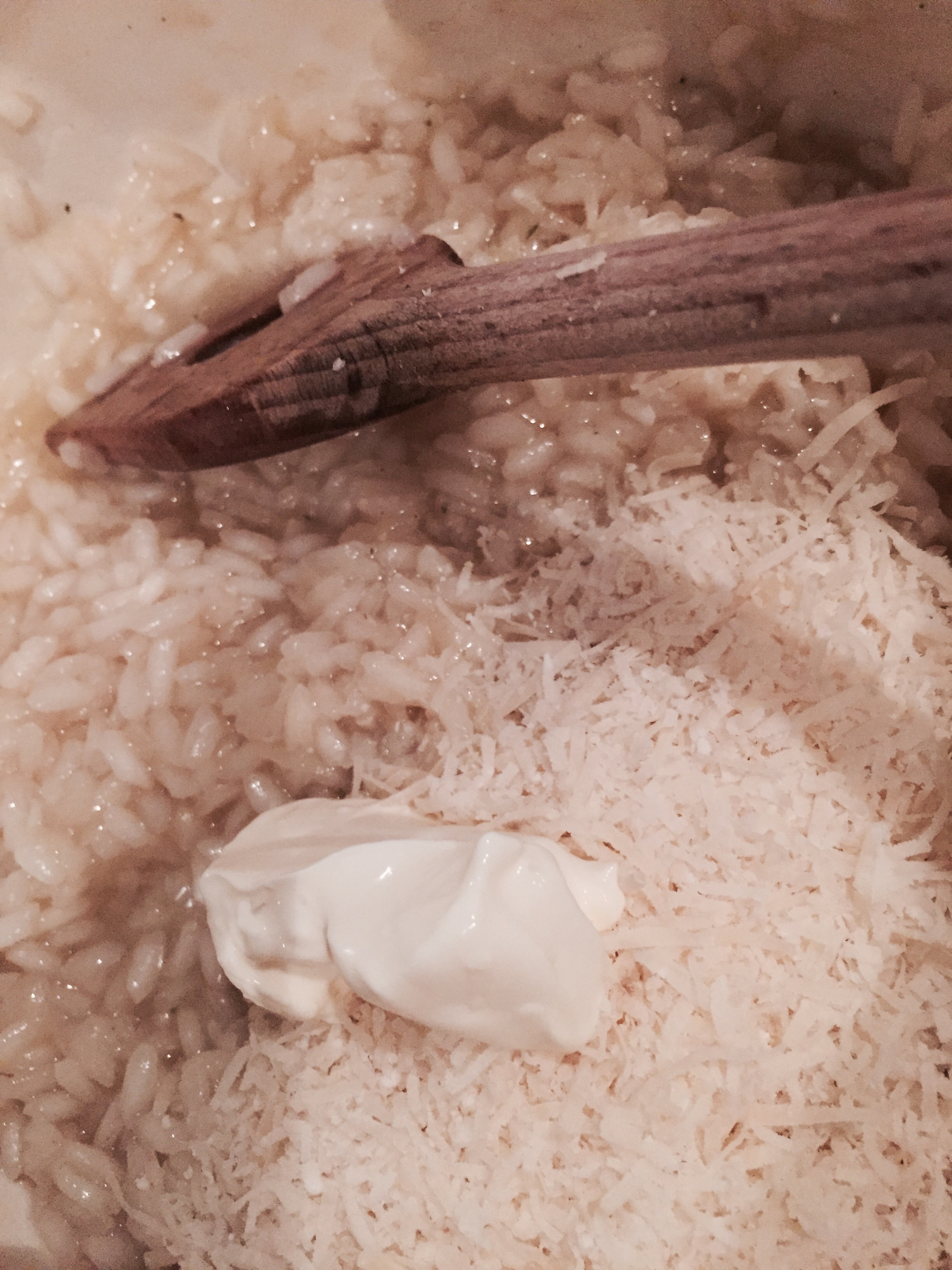 Zum Schluss mit dem Parmigiano und ein Teelöffel Creme Fraîche verfeinern.