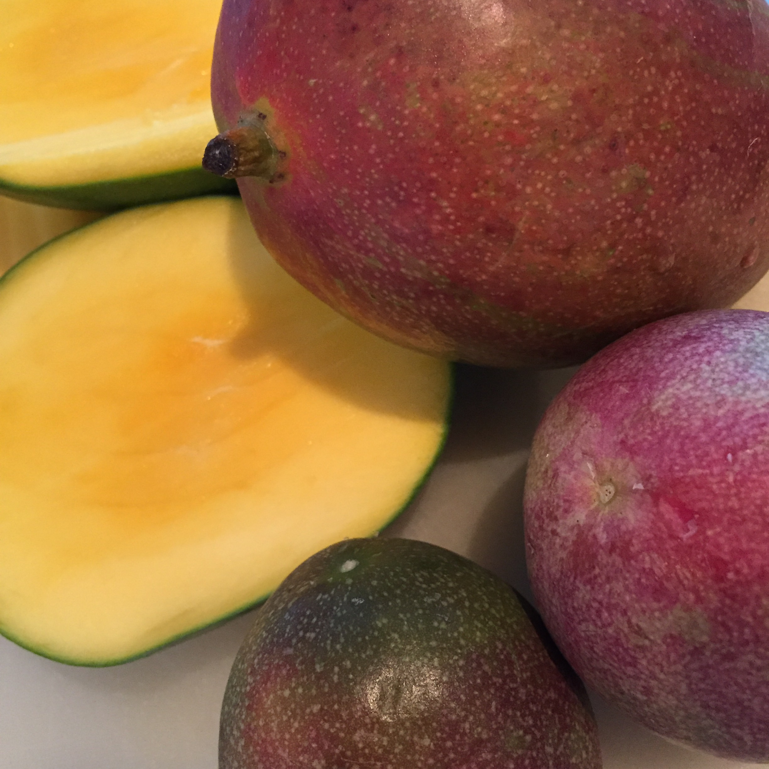 Die Mangowürfel und das Fruchtfleisch zusammen wiegen und mit der Hälfte des Gewicht an Zucker, der Vanille und dem Päckchen Gelfix einige Minuten sprudelbd kochen lassen.