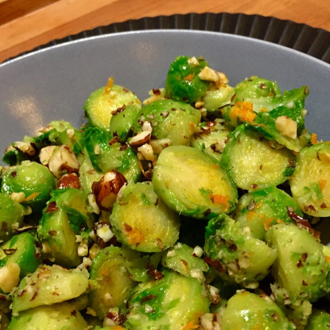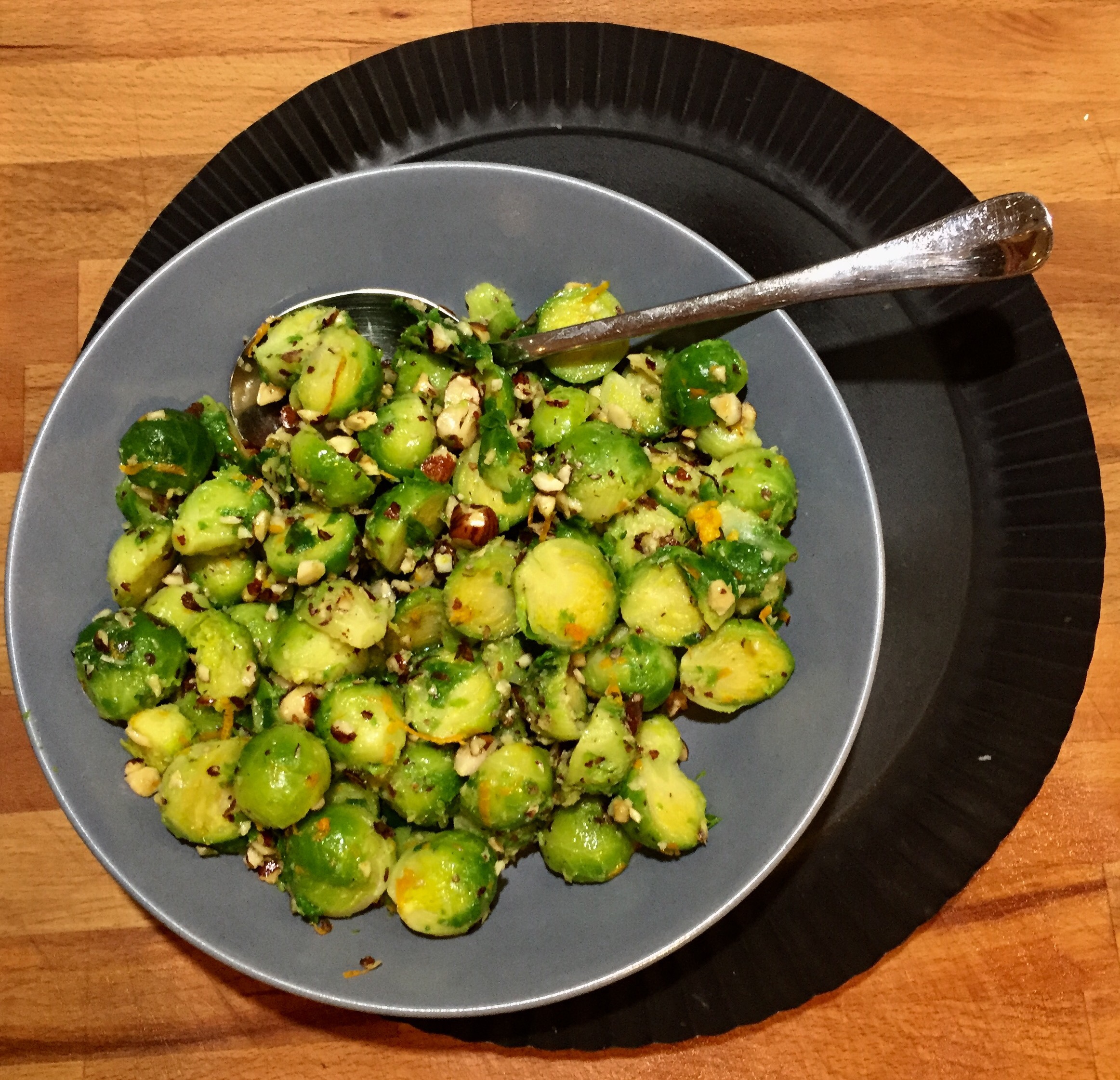Den Rosenkohl vom Strunk entfernen und waschen. In Salzwasser bissfest kochen, max. 10 Minuten, und dann kalt abschrecken.