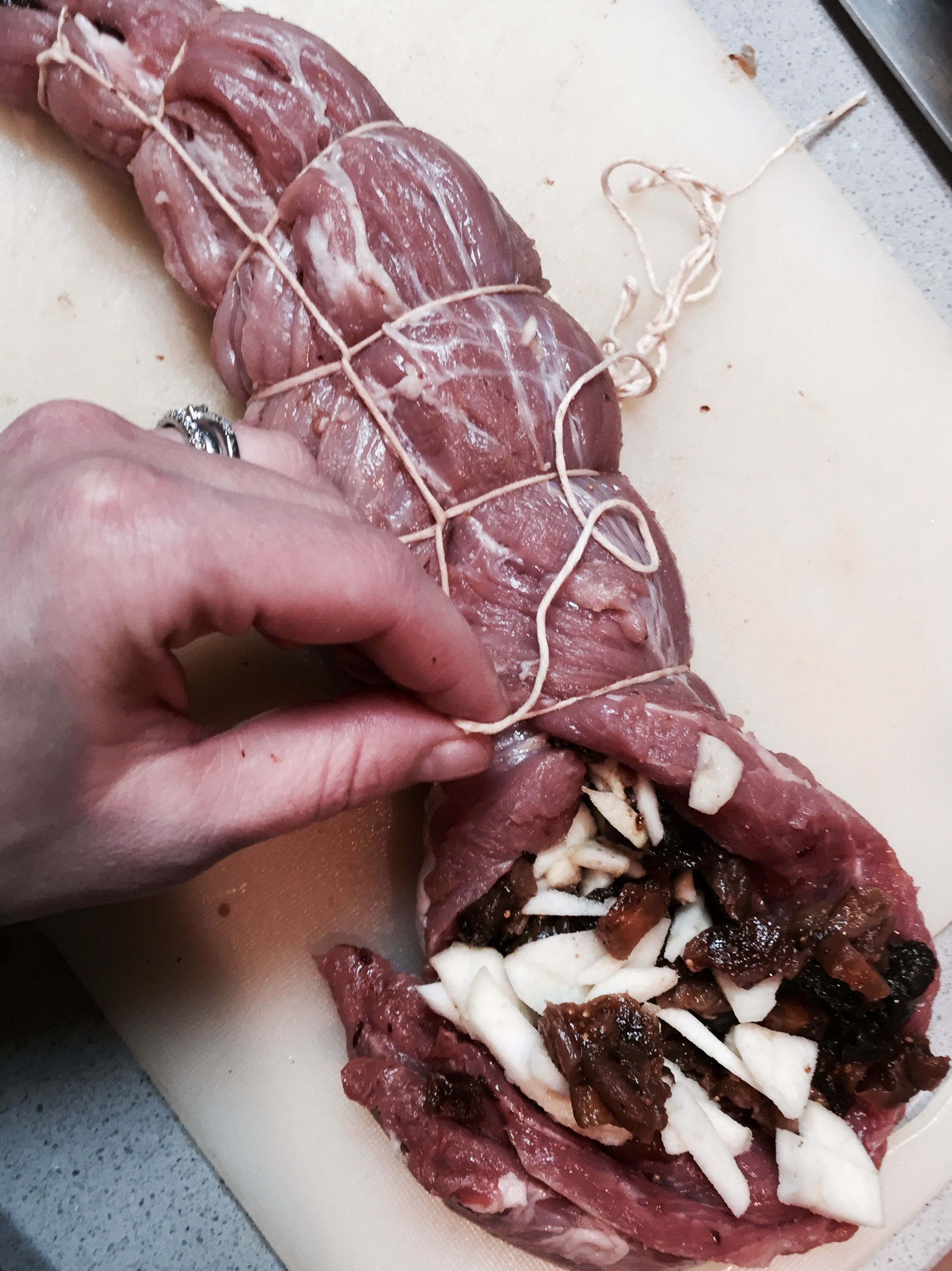 Das Filetstück in Sich aufrollen und mit einem Küchengarn fest schliessen.