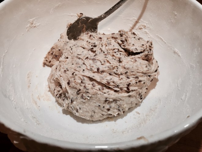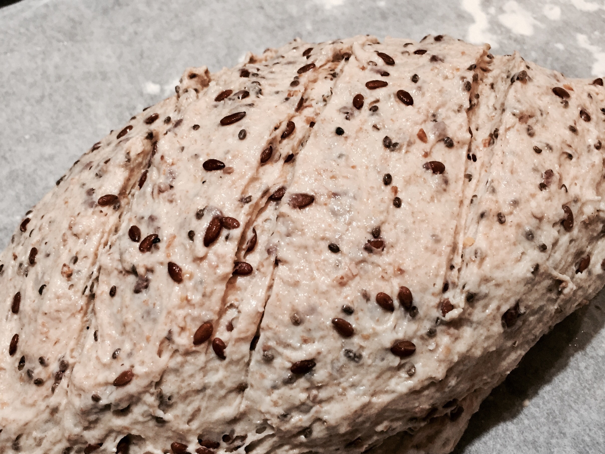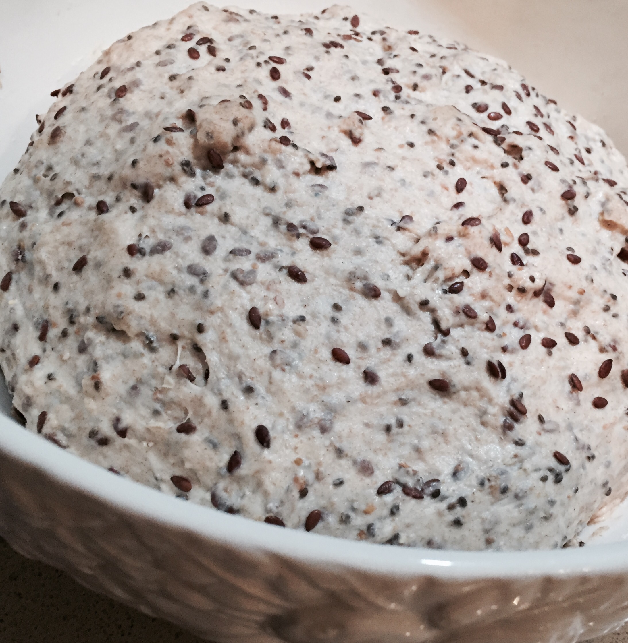 Anschliessend die aufgequollenen Kerne mit den restlichen Zutaten in der Küchenmaschine einige Minuten kneten bis sich alle Zutaten gut vereint haben.