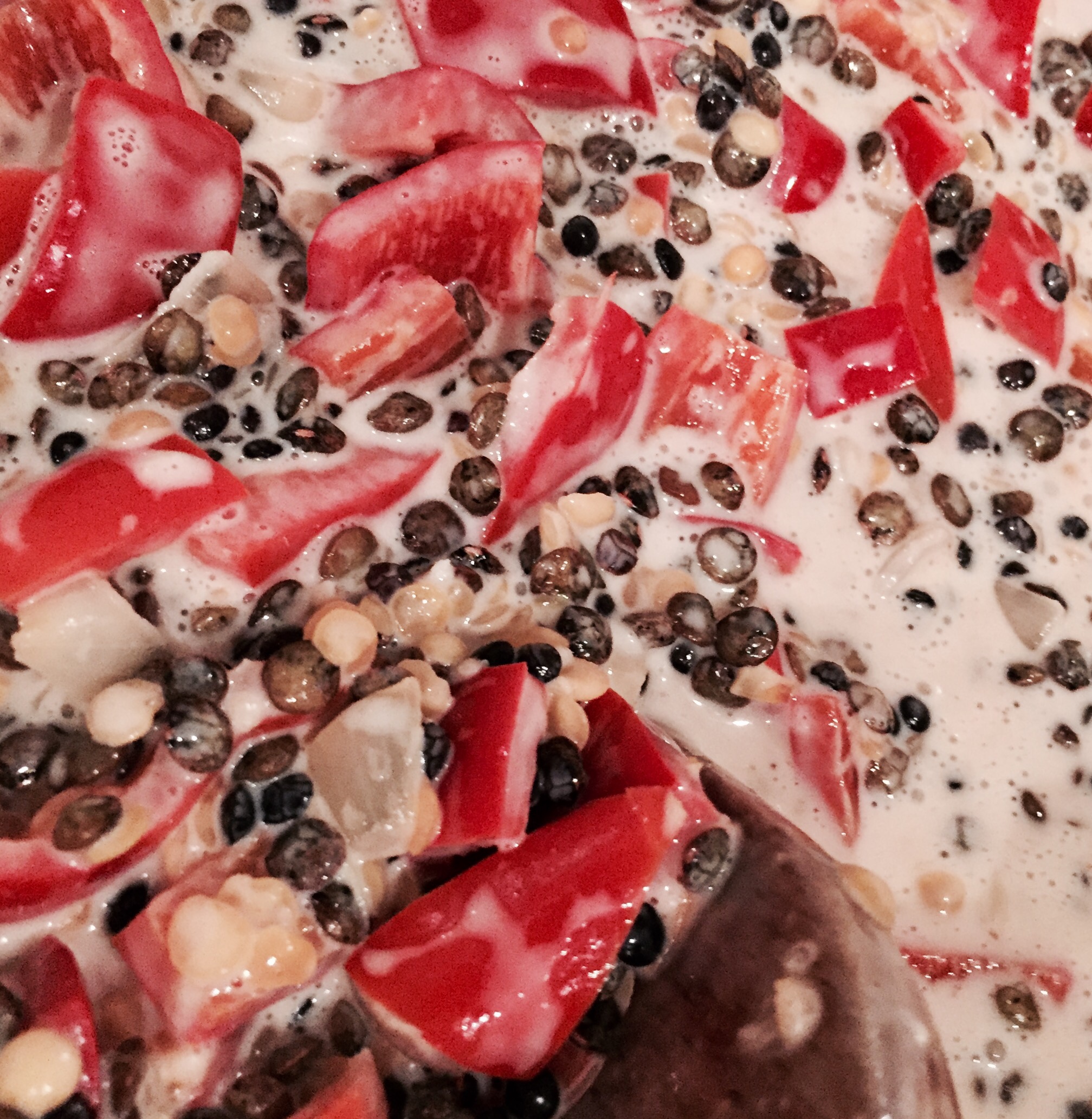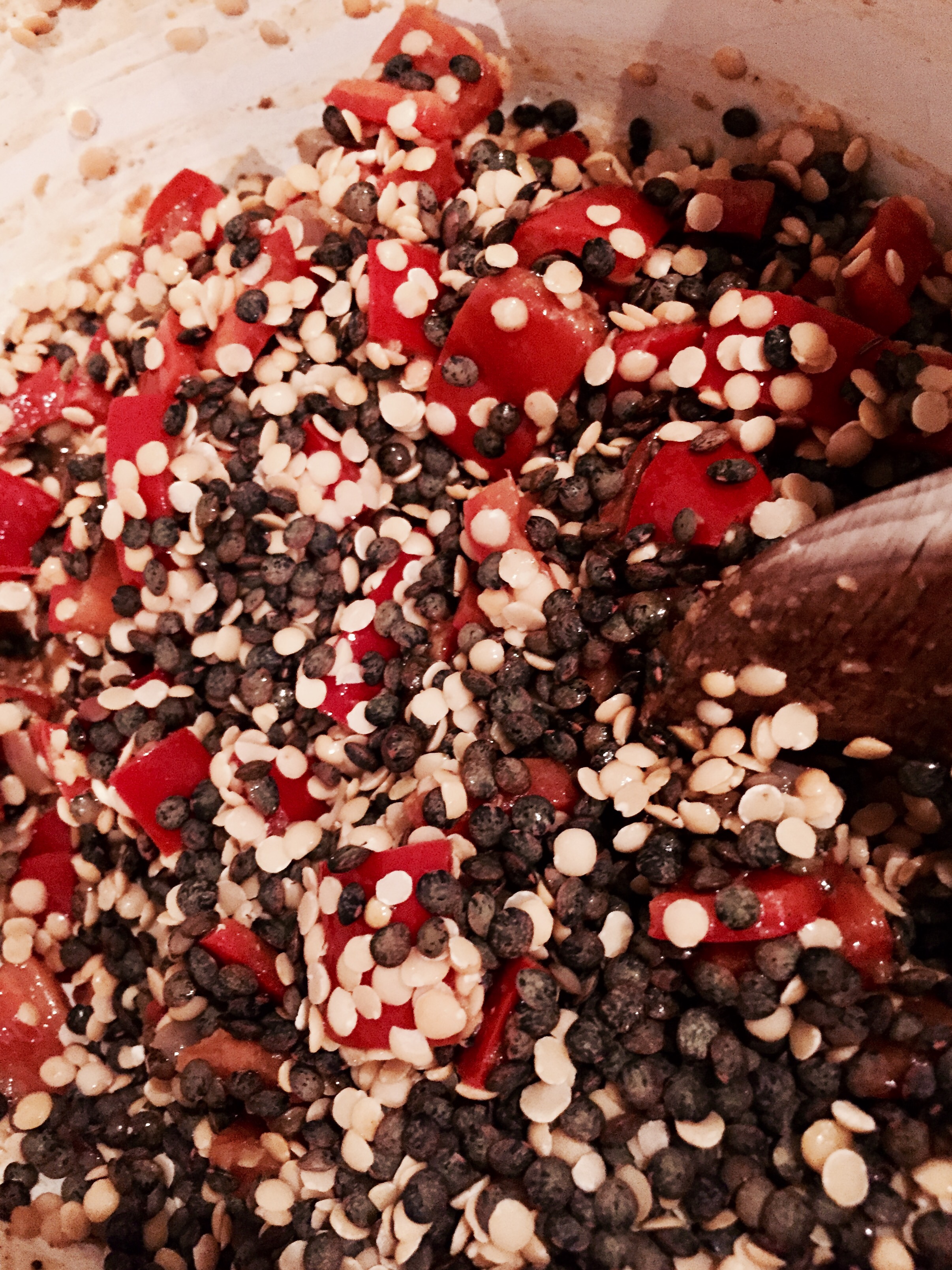 1 grosse Tasse gemischte Linsen (bei mir gelbe, grüne und Beluga Linsen)