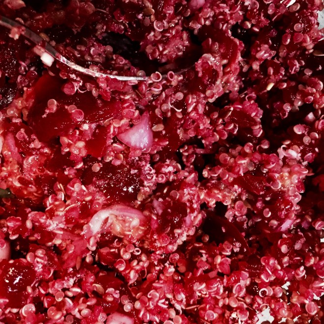 P.S. Wer auf Fleisch nicht verzichten kann, einfach ca. 150 gr gehacktes Rindfleisch zu der Quinoa- Rote Beete Masse geben und gut verkneten.