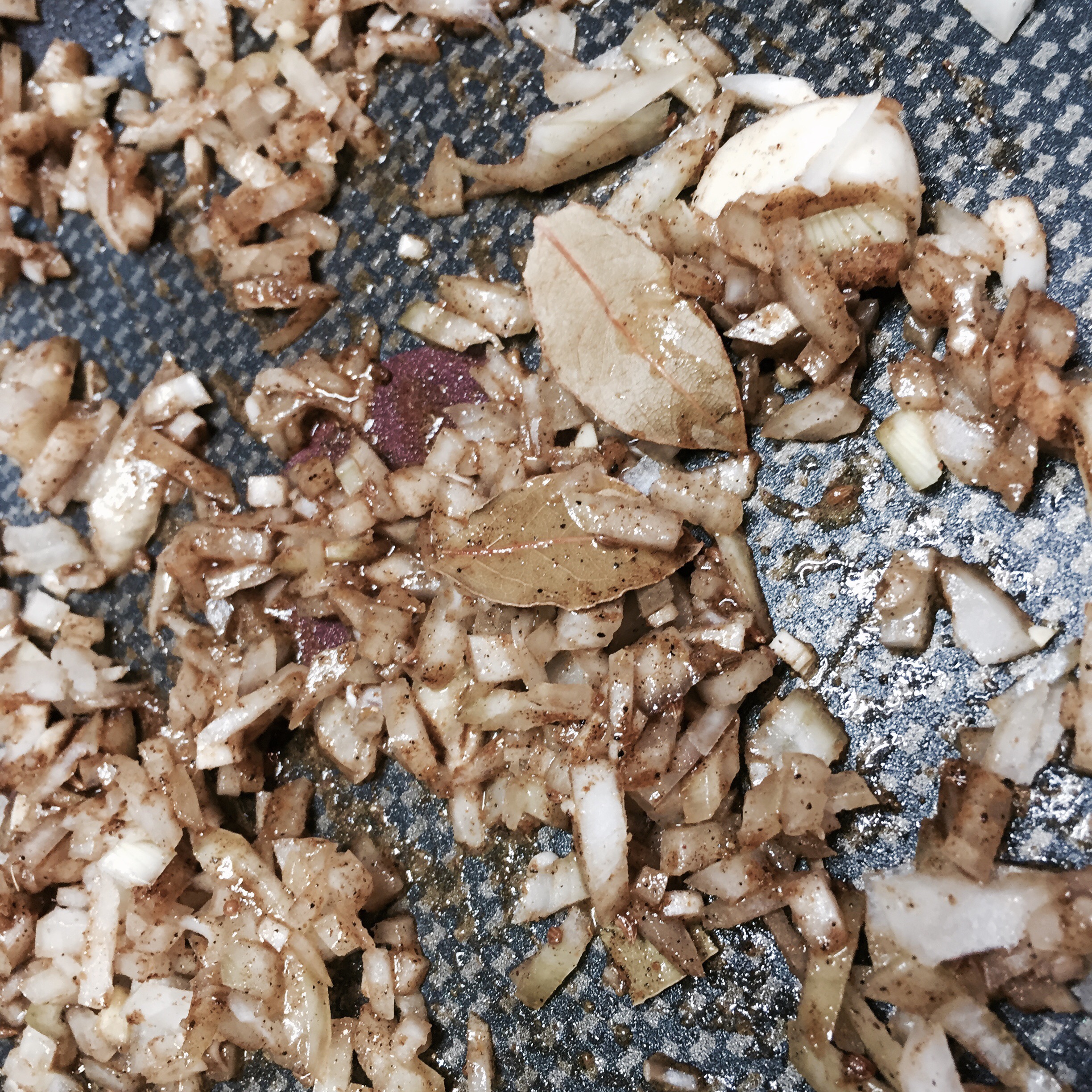 Die Zwiebel fein würfeln, den Knoblauch schälen und in etwas Olivenöl dünsten. Nun alle Gewürze dazugeben und einige Minuten rösten.