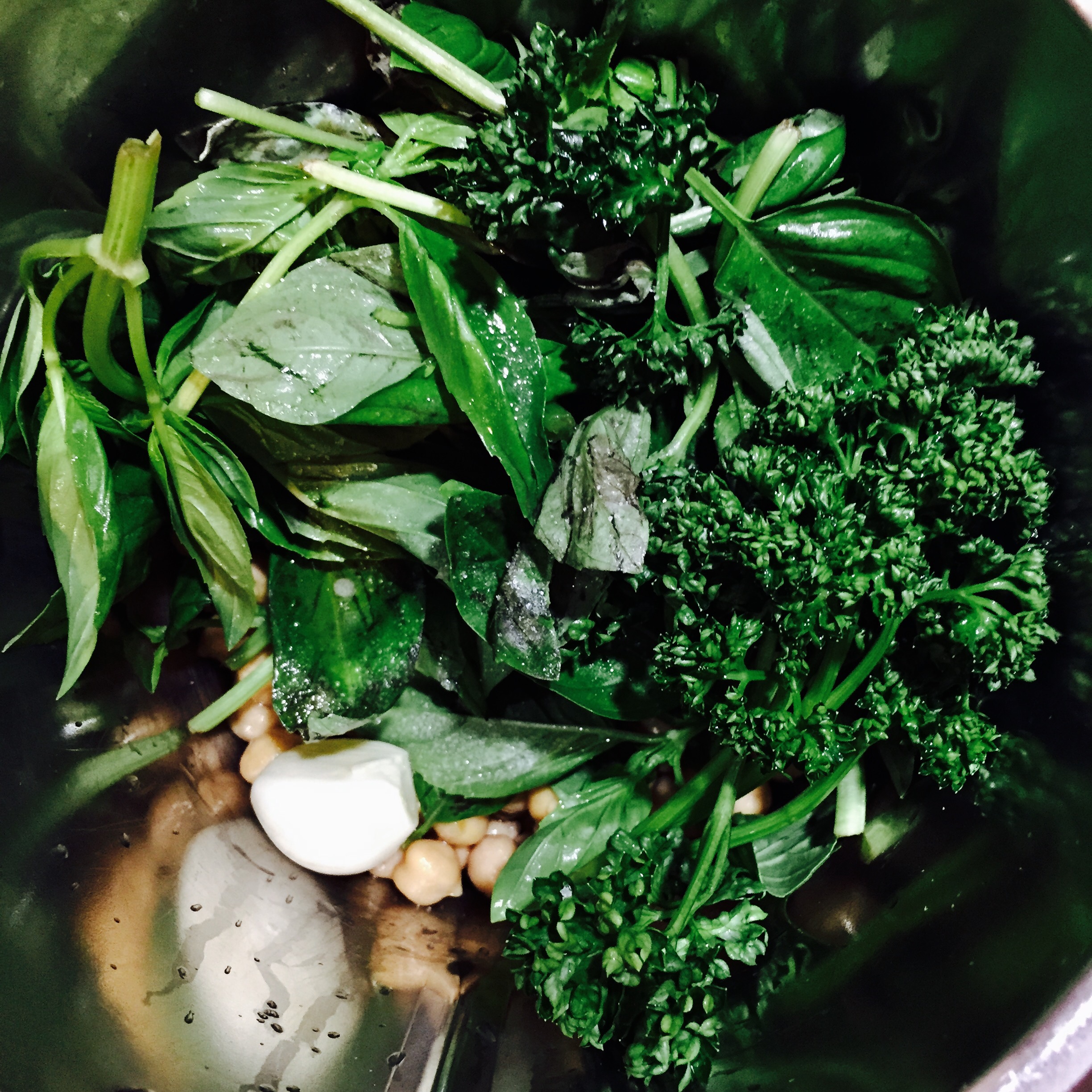 2 handvoll Basilikum und 1/2 handvoll Petersilie