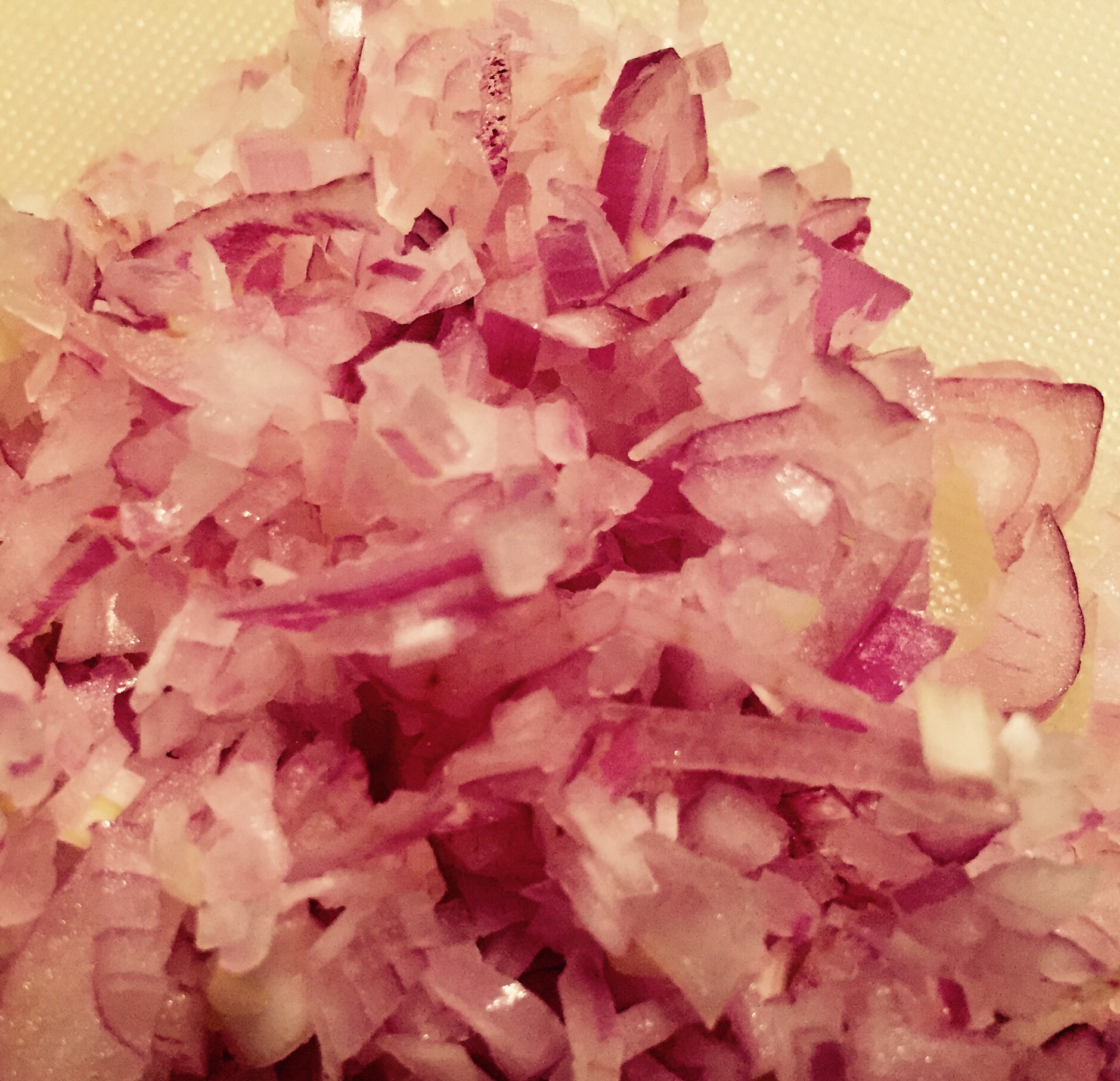 Die Schalotte sehr fein würfeln und in etwas Olivenöl weich dünsten.