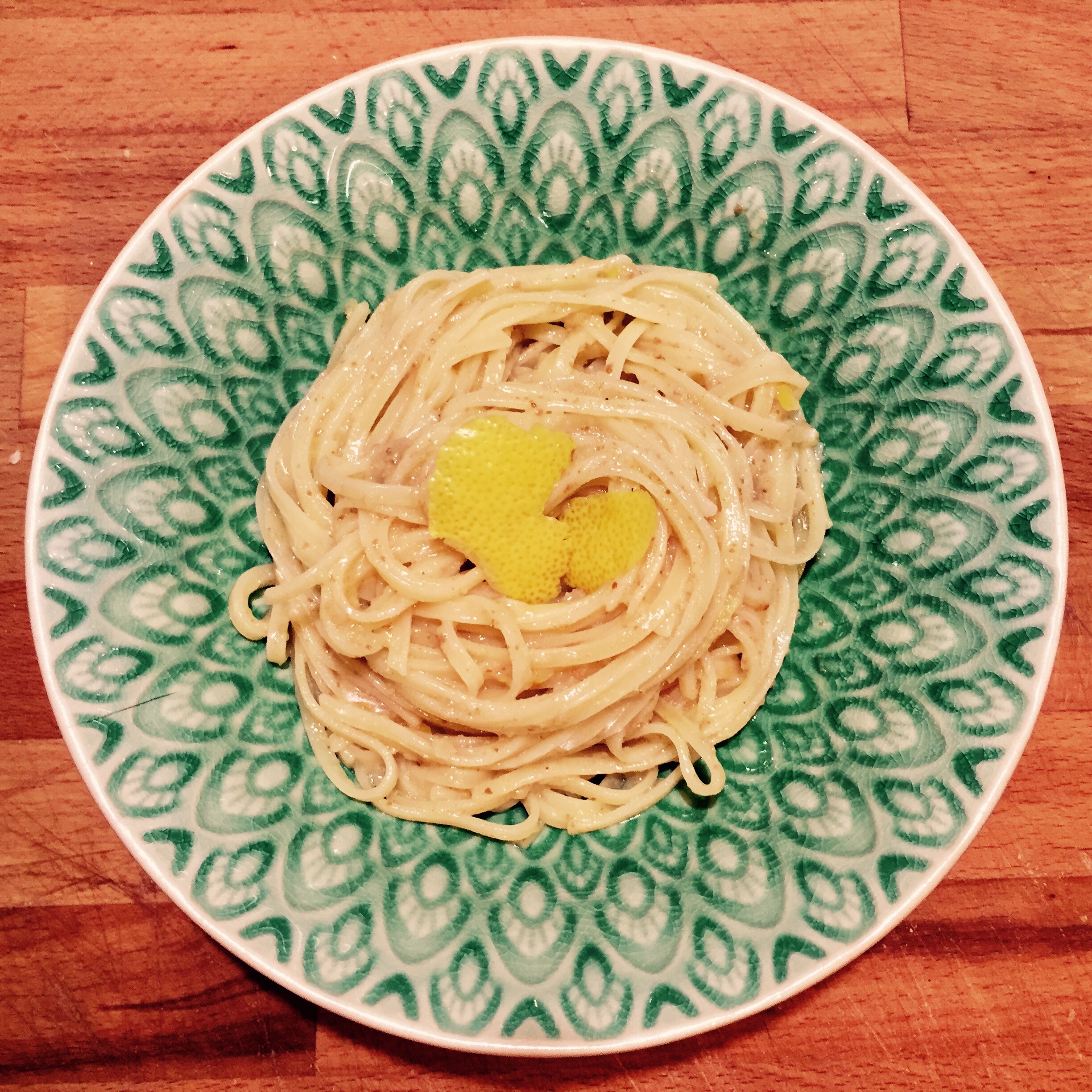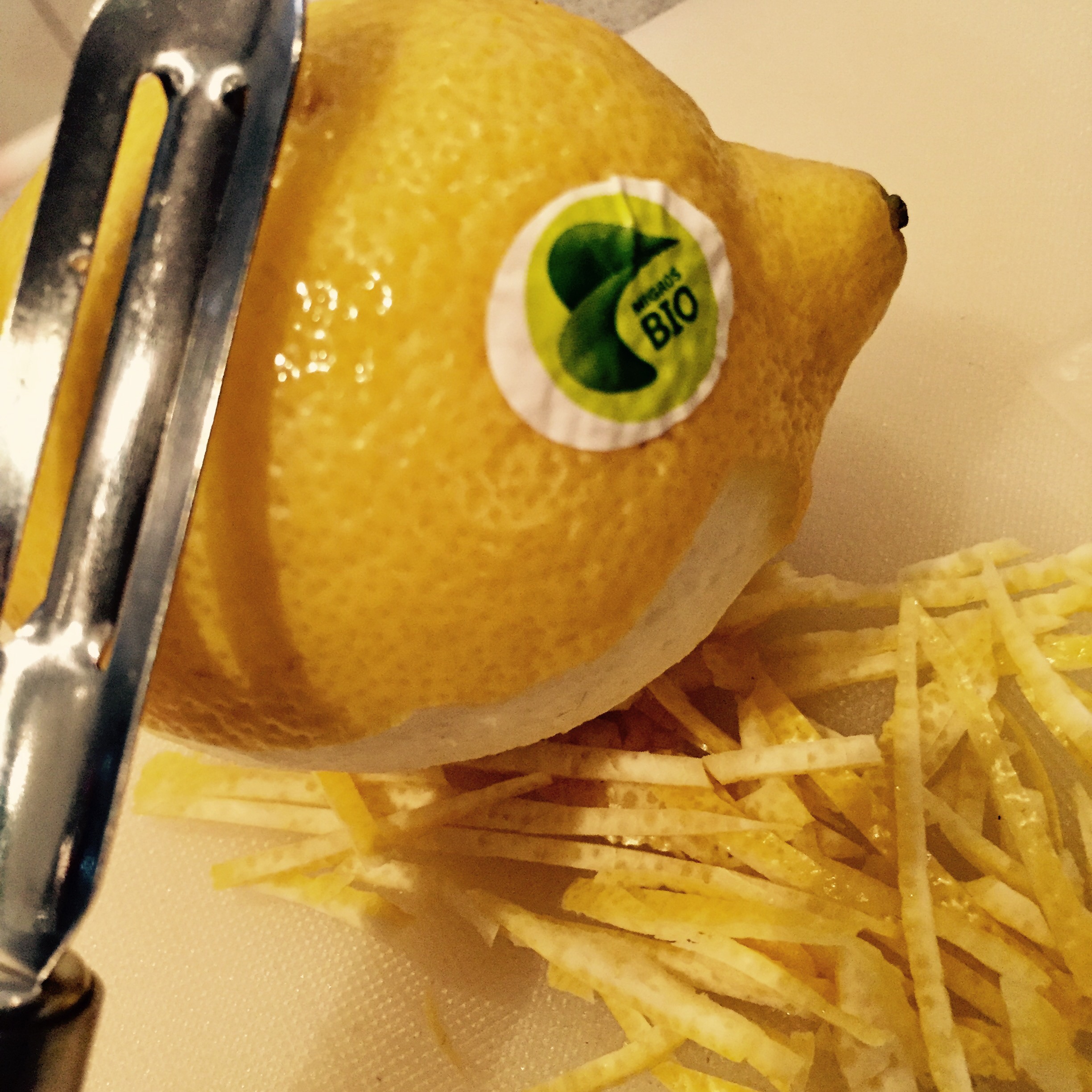 Zeste einer 1/2 Zitrone, Salz und Olivenöl Extra Vergine