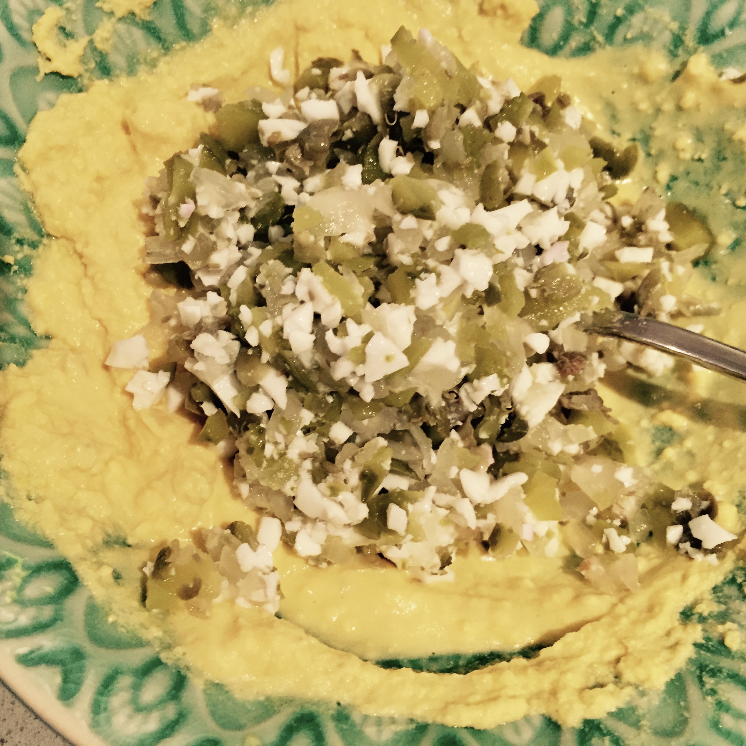 Alle anderen Zutaten fein hacken und mit dem Eigelb verrühren.