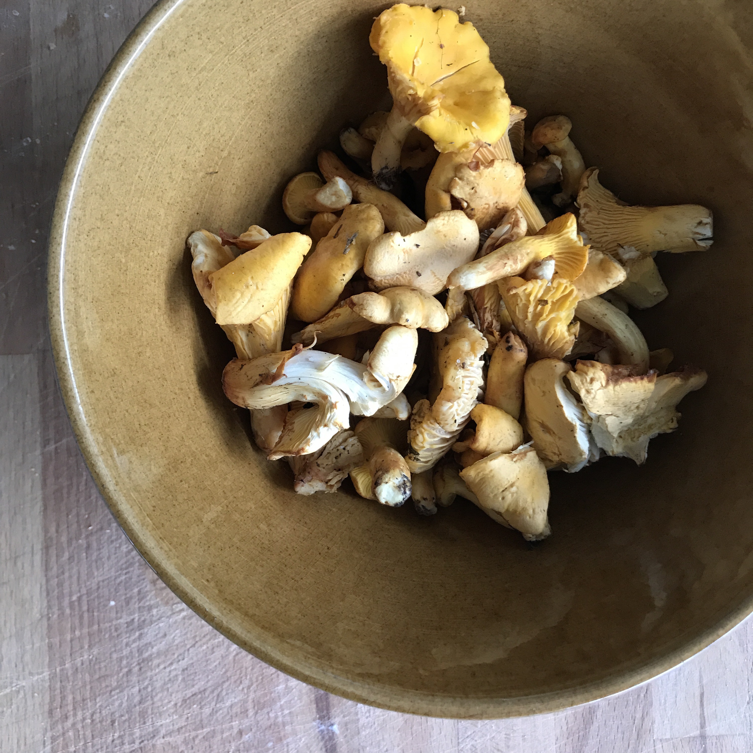 In der Zwischenzeit die Pfifferling putzen und küchenfertig machen.