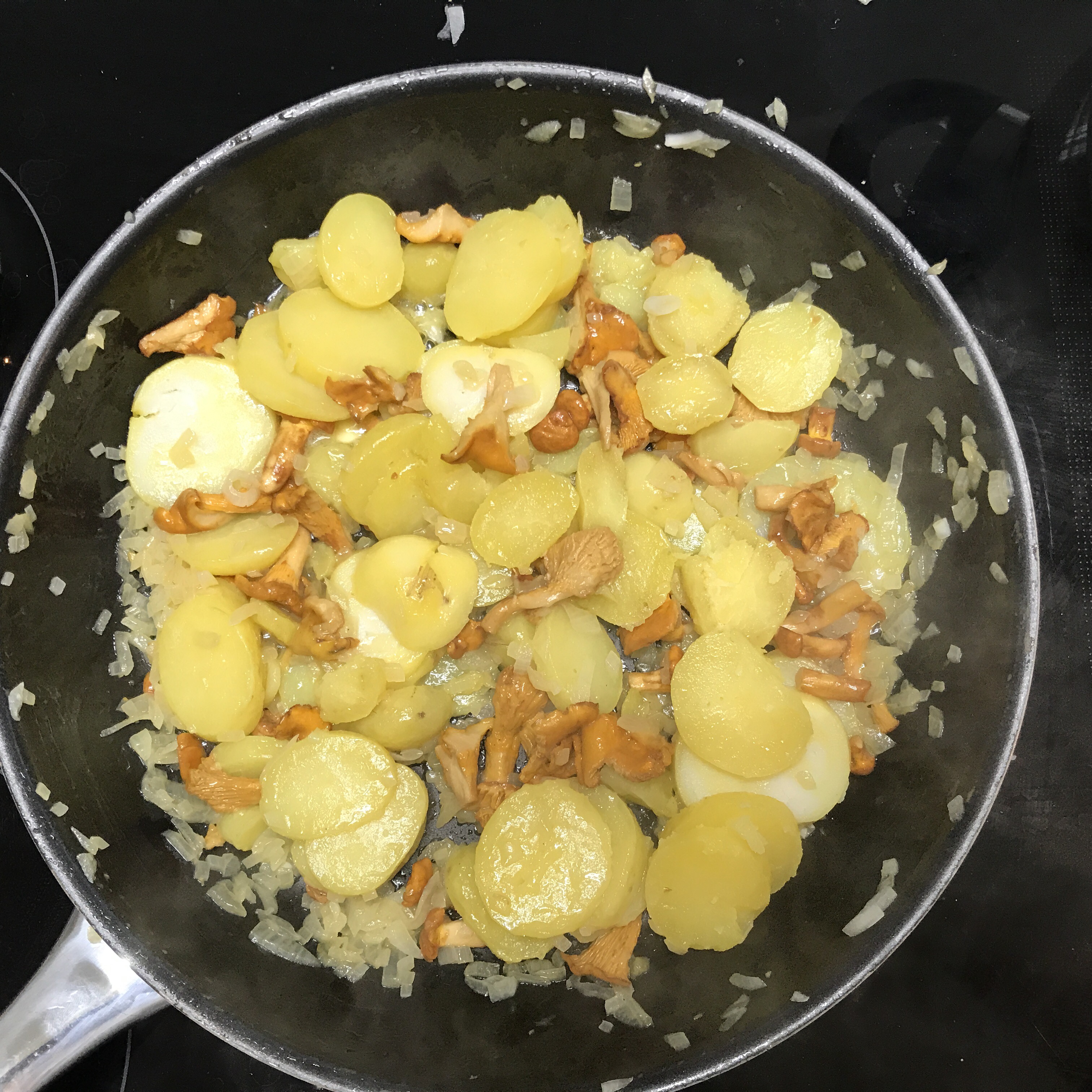Festkochende Kartoffeln (Menge je nach Pfifferlinge; 2:1)