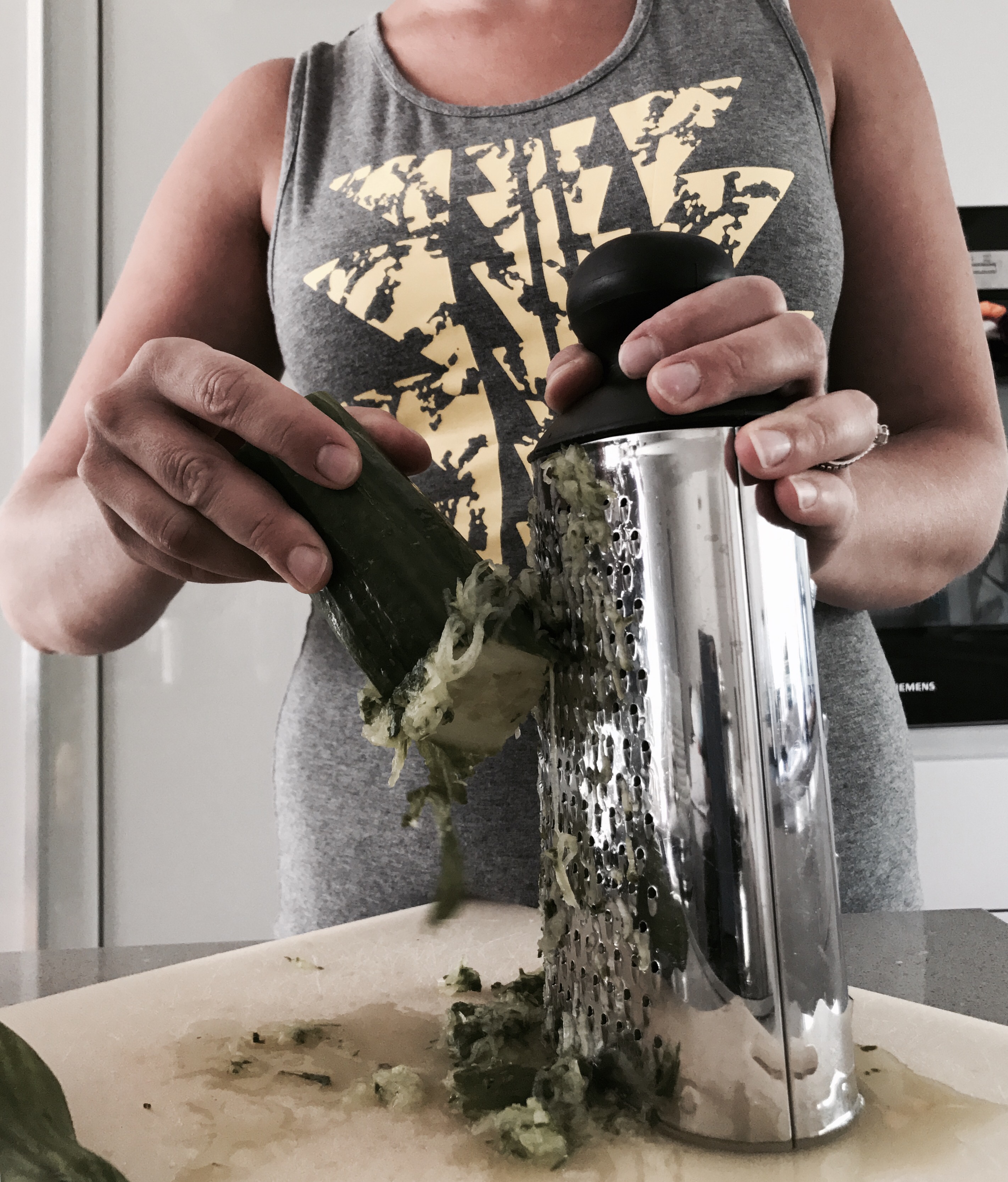 Anschliessend die Gurken sehr fein raspeln und in einem Sieb sehr gut abtropfen lassen.