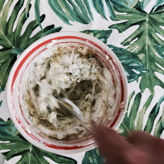 1 Becher griechischer Yoghurt (alternative je zur Hälfte Naturyoghurt und Creme Fraîche)