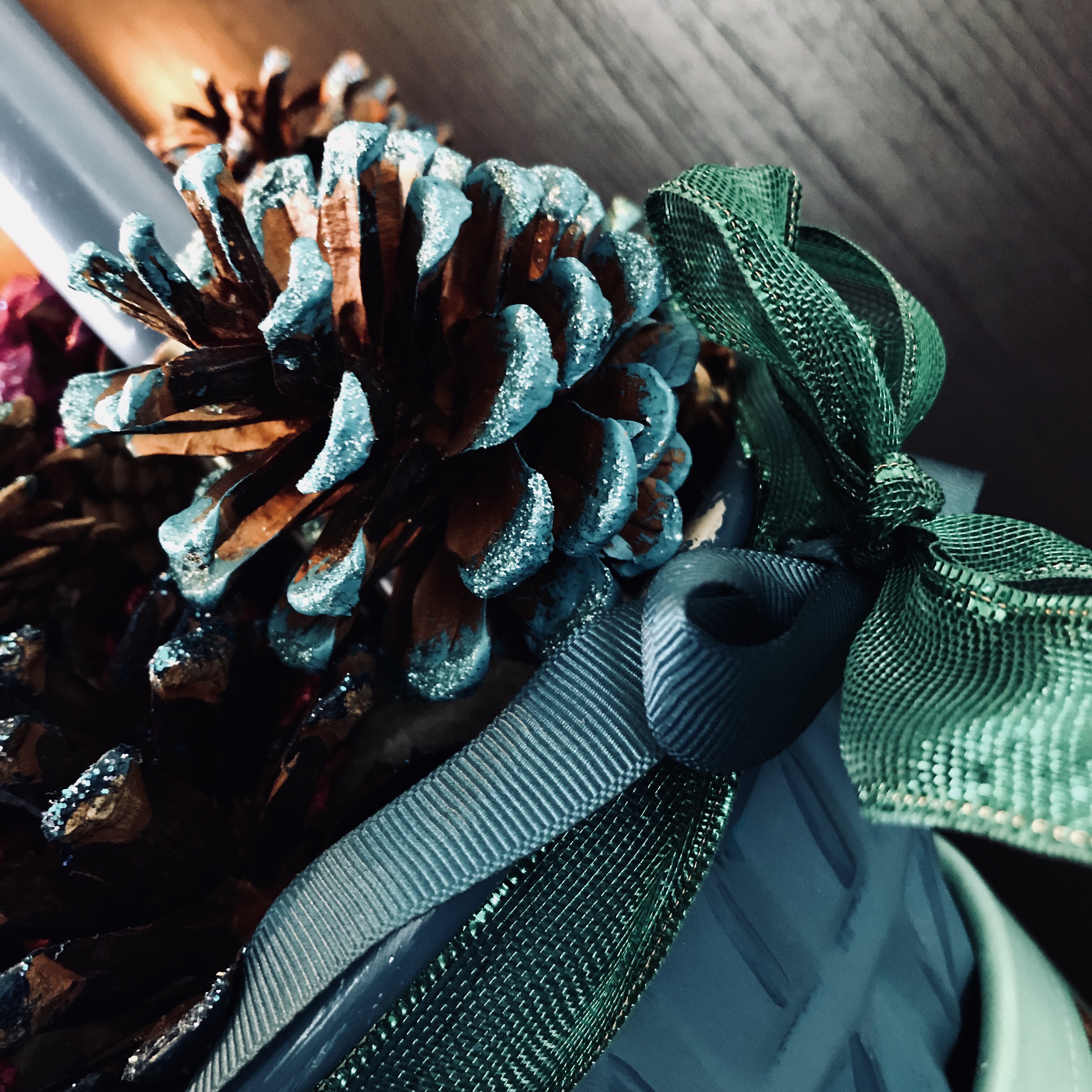 Alternativ könnt ihr die Zapfen auch in einen Metallkorb geben, ich habe letztes Jahr einen tollen bei Depot gefunden, bereits mit angebrachten Kerzenhaltern (ähnlich hier).