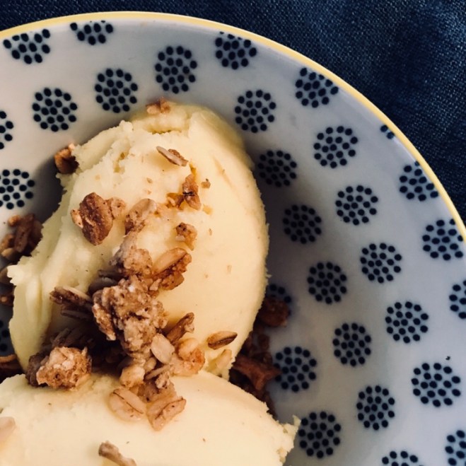 Die so entstandene Masse in der Eismaschine nach Anleitung gefrieren lassen.