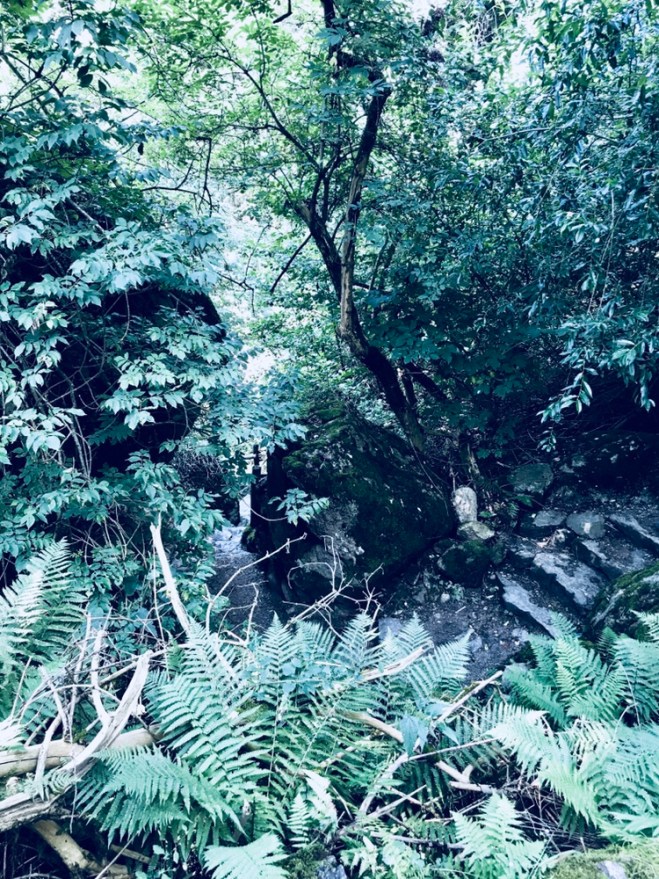 Gleich gegenüber der Scheune der Gasthofs Wasserfall geht dann ein kleiner geheimnisvoller Weg ab. Er verwinkelt sich zwischen Felsvorsprüngen und Wurzelstöcke und könnte einer Geschichte von Zwergen und wichteln entspringen.