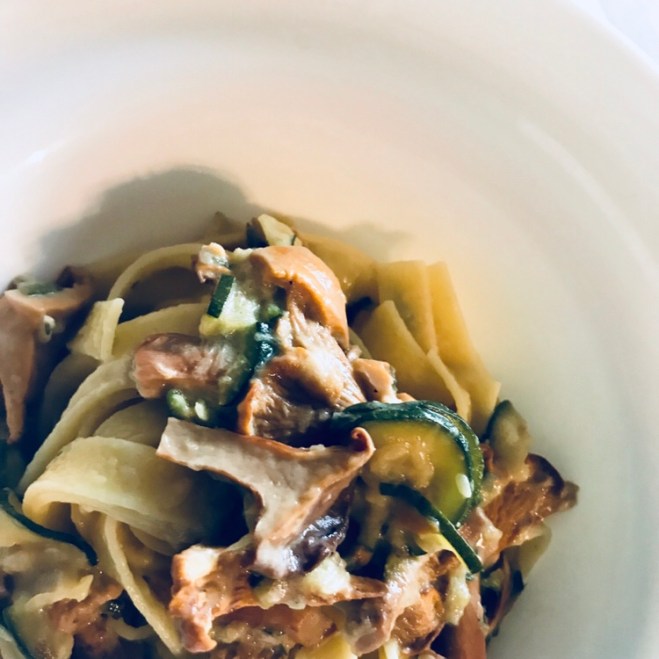 Solange dünsten bis die Pfifferlinge weich sind und die Flüssigkeit welche der Pilze entlassen haben und die Sahne etwas eingekocht ist.