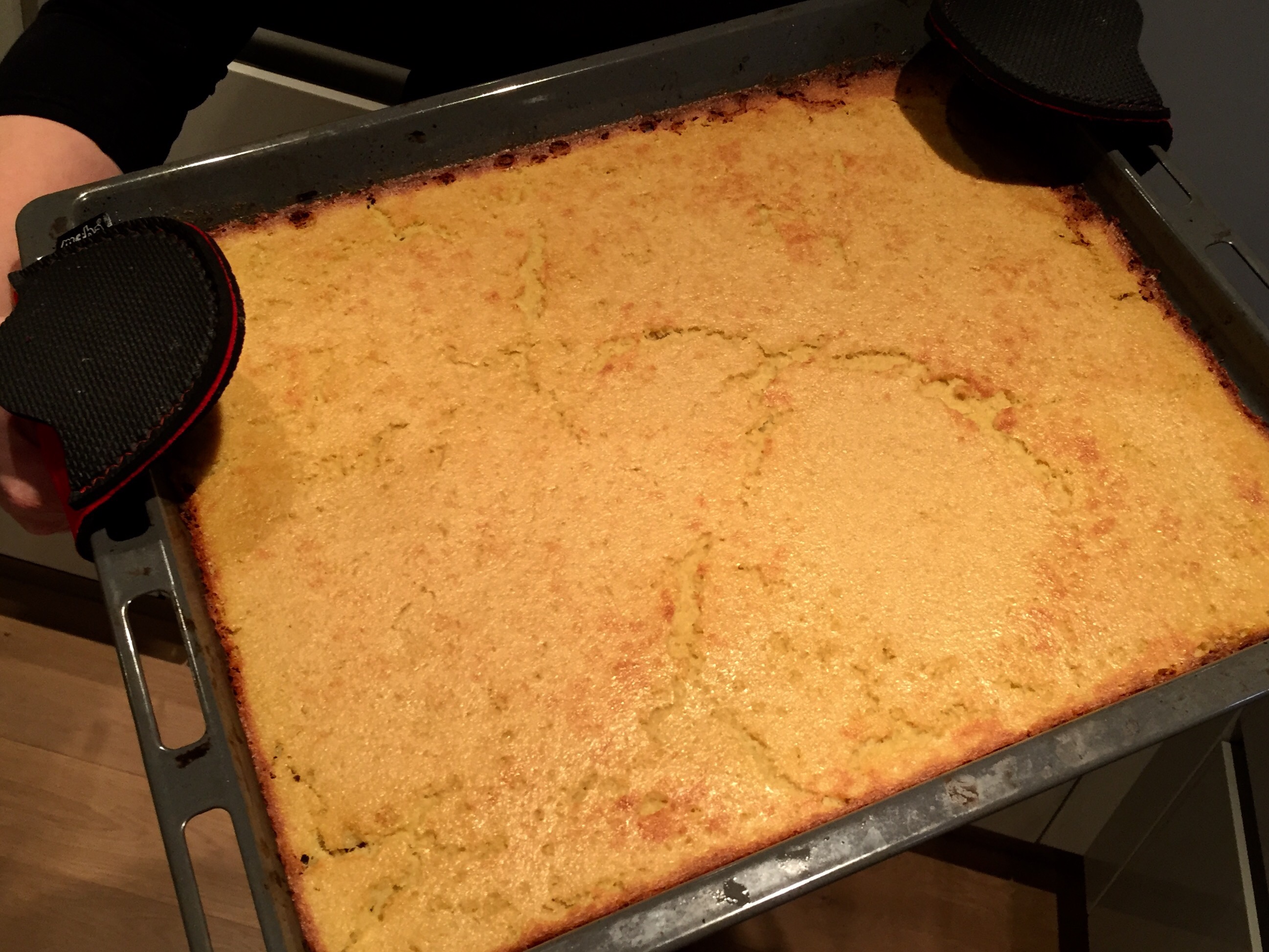 Nach dieser Zeit das Blech nach oben verschieben damit die Farinata auch auf der Oberfläche goldig-braun gebacken wird.