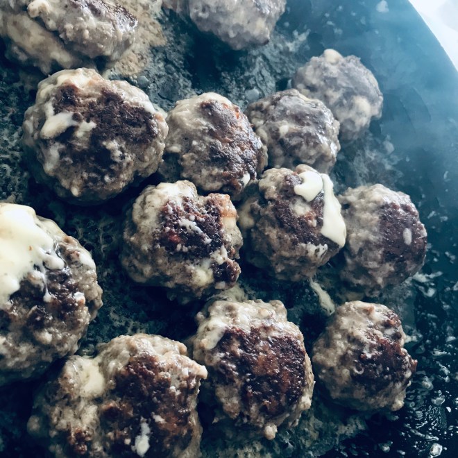 Wer möchte kann für noch mehr Geschmack einige Scheiben Schmelzkäse auch auf den Polpette verteilen und mit geschlossenem Deckel zum Schmelzen bringen.
