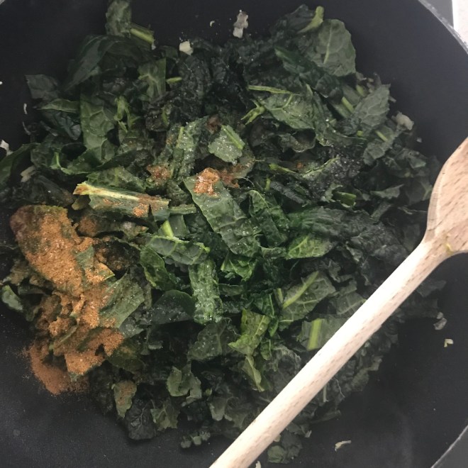 Als letztes die Palmkohlblätter dazugeben, leicht salzen und weichdünsten.