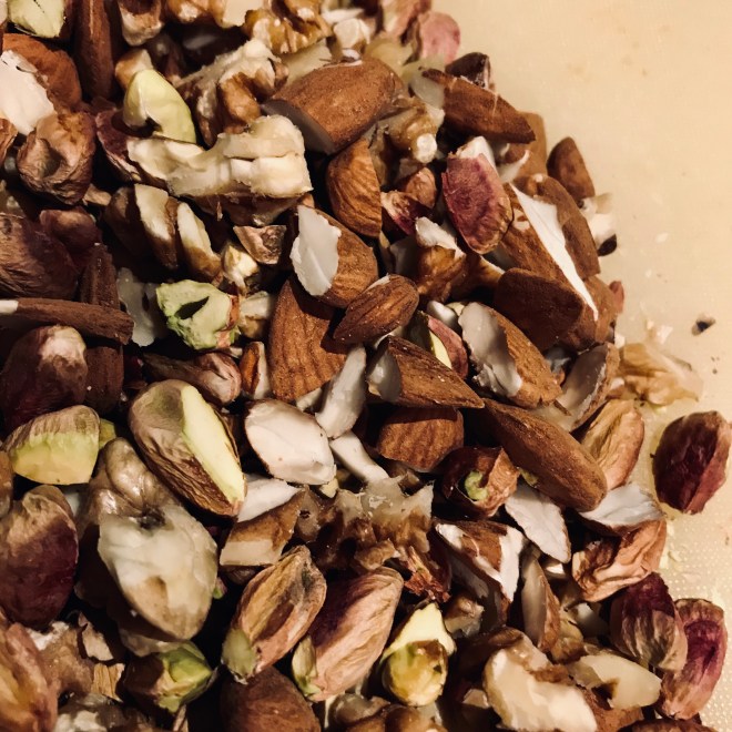 150 gr Nüsse (bei mir Pistazien und Walnüsse)