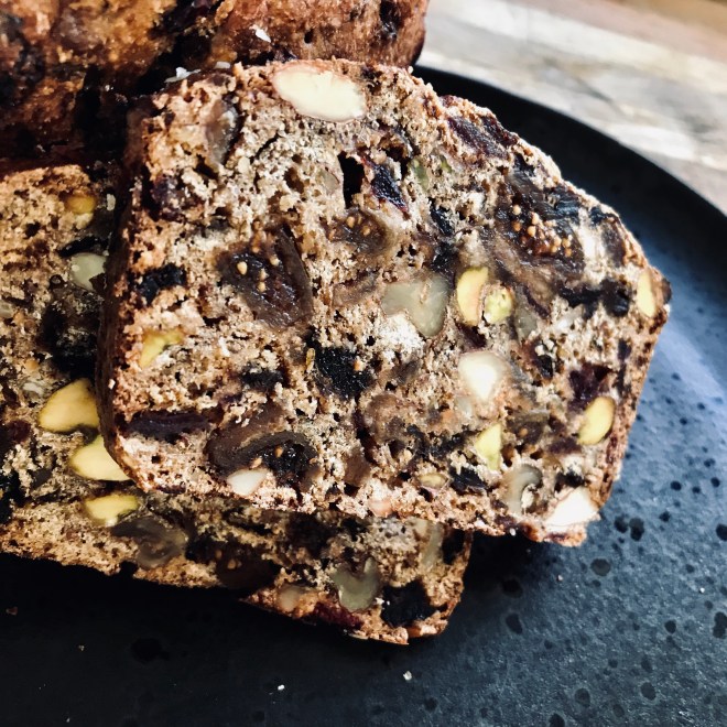 In einer mit Backpapier ausgelegten Kastenform den Teig streichen und im vorgewärmten Ofen bei 180 Grad ca. 40 Minuten backen.