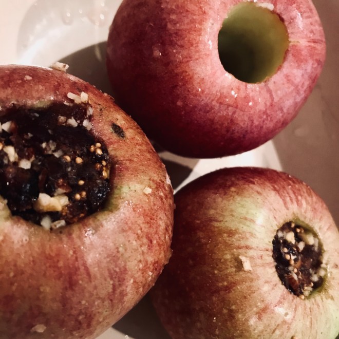 Anschliessend das Kerngehäuse des Apfels entfernen und mit der Masse füllen. Eine Flocke Butter darauf geben und im Ofen bei 180 Grad ca. 20 Minuten weich backen.