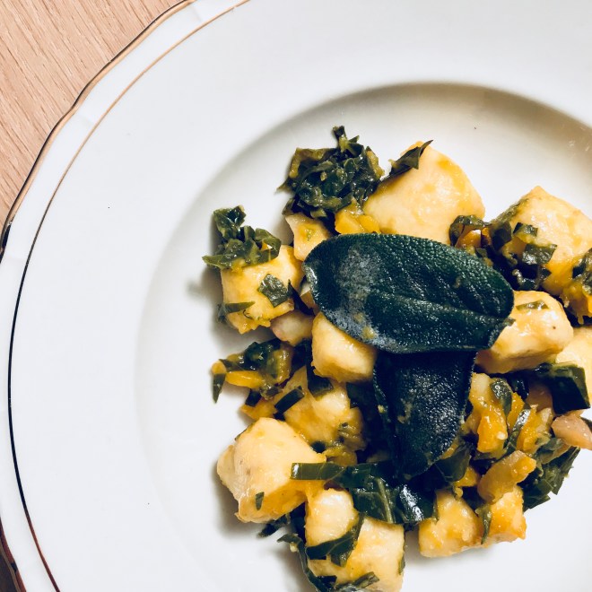 Eine einfache Art Gnocchi zu servieren ist mit geriebenem Parmesankäse und geschmolzener Sabeibutter. Weitere passende Saucen sind Ragú – Fleischsugo (mit oder ohne Schnellkochtopf) oder Schneller Tomatensugo.