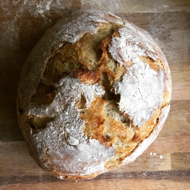 Bei 230°C 30 Minuten im vorgeheizten gusseisernen Topf backen. Anschliessend 15 Minuten ohne Deckel fertig backen.