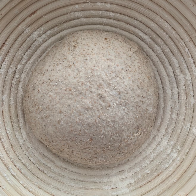 Anschliessend den Teig schonend in Form bringen und 30 Minuten bei Raumtemperatur mit Schluss nach unten im Gärkorb zur Gare stellen.
