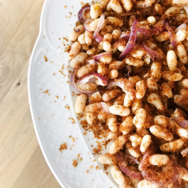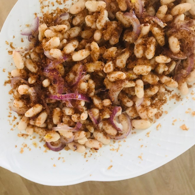 Die Bohnen mit der Zwiebel mischen und auf eine Servierplatte geben, grosszügig mit geriebener Bottarga bestreuen und mit Olivenöl betreufeln. Je nach Geschmack noch nachsalzen.