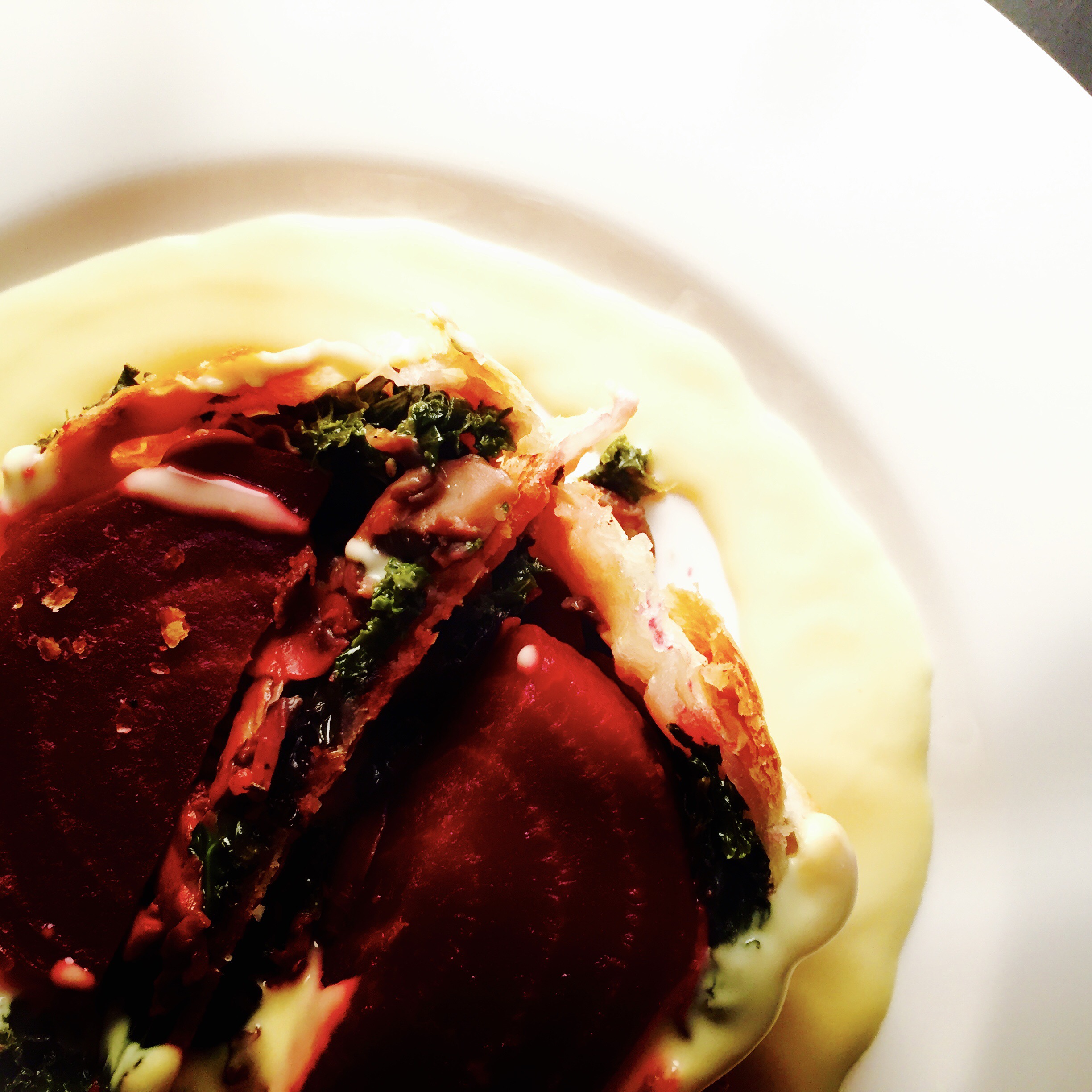 Zu der Roten Bete a là Wellington passt sehr gut Sauce Bearnaise oder Sauce Hollandaise.