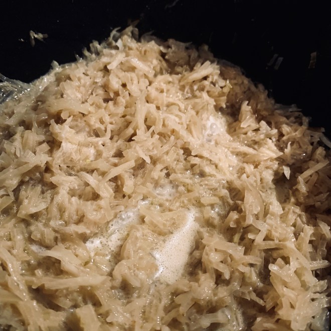 Den Fenchel sehr feine Streifen schneiden und mit etwas Olivenöl und Salz sehr weich schmoren.