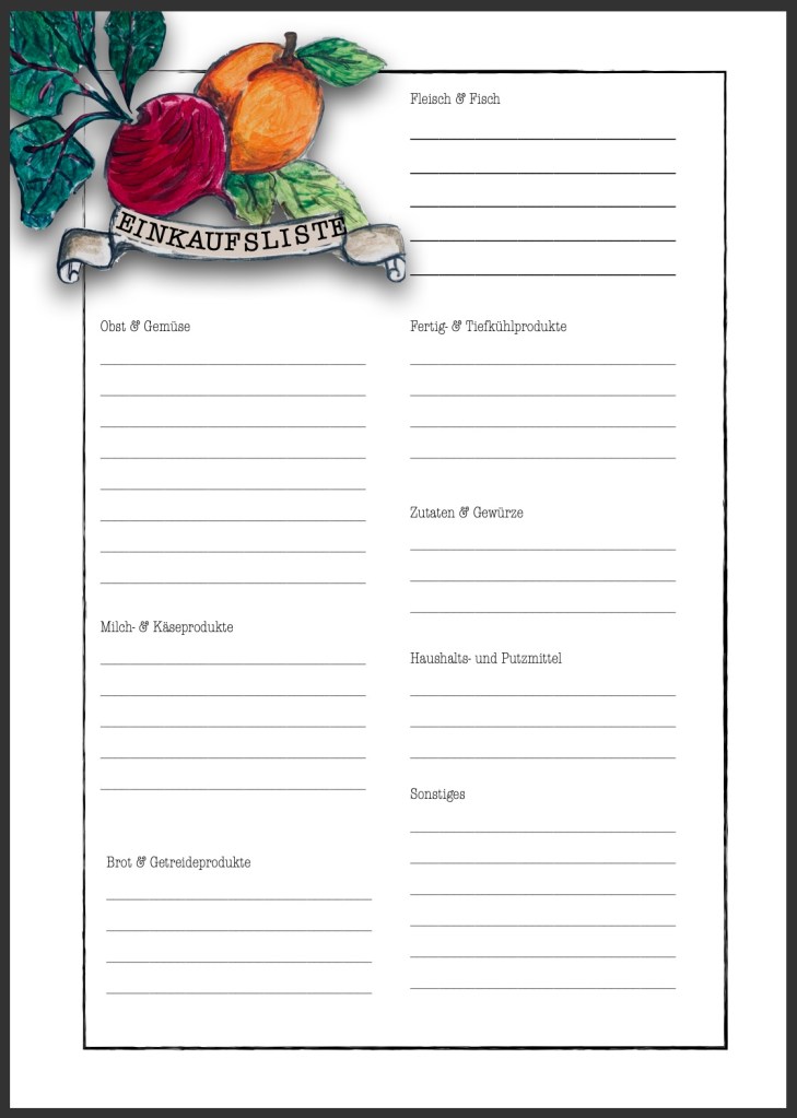 Anbei nun meine 2 Printable… einen Wochenplaner und einen Einkaufszettel… wenn ihr die ausgedruckten Vorlagen laminiert und mit einem Folienstift beschreibt sind sie auch mehrmals benutzbar und umweltfreundlicher, da man sie dann immer wieder löschen und beschreiben kann…also in diesem Sinne viel Spass beim Planen…