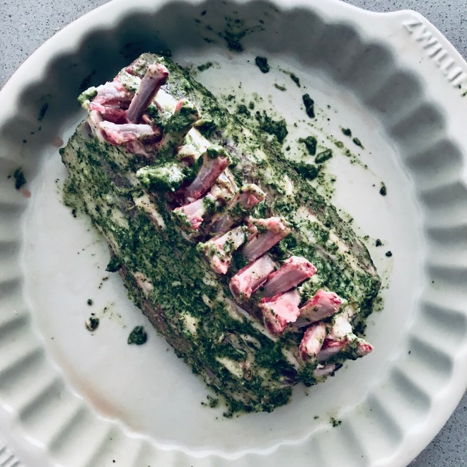 Die Lammracks damit einreiben und ca. 1 Stunde marinieren.