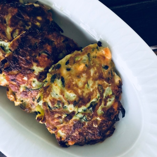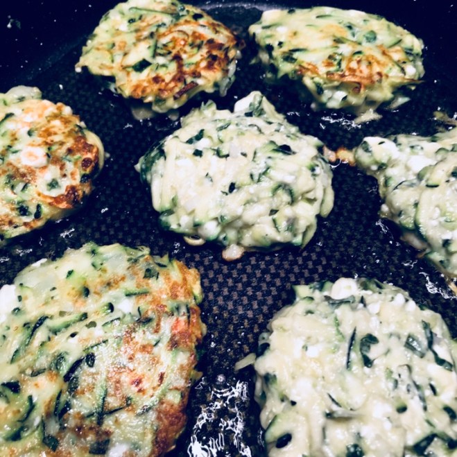 Die Puffer in reichlich Frittieröl beidseitig goldig herausbraten. Mit Tzatziki servieren.