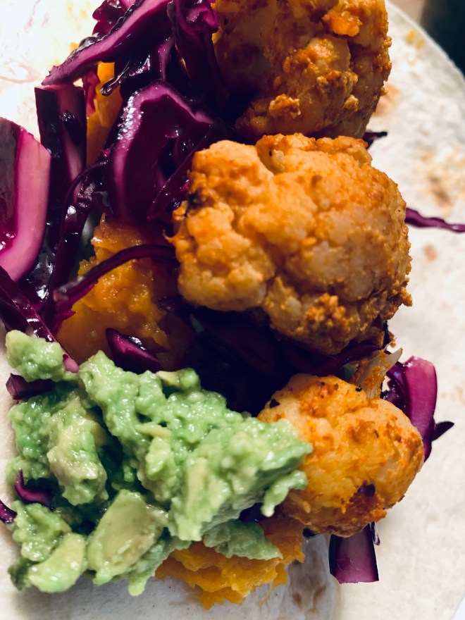 Sobald der Süsskatoffelstampf und die Guacamole fertig sind alle Speisen in Schüssel auf den Tisch bereitstellen, sodass jeder nach Geschmack sein Fladen füllen und geniessen kann.