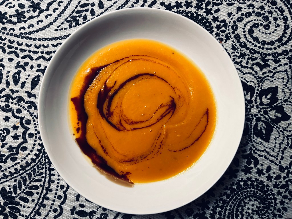 Anschliessend das Gemüse in einem Standmixer mit 1-2 Tassen Brühe fein mixen. Je nach Geschmack soviel Brühe dazugiessen bis die gewünschte Konsistenz erreicht wird.