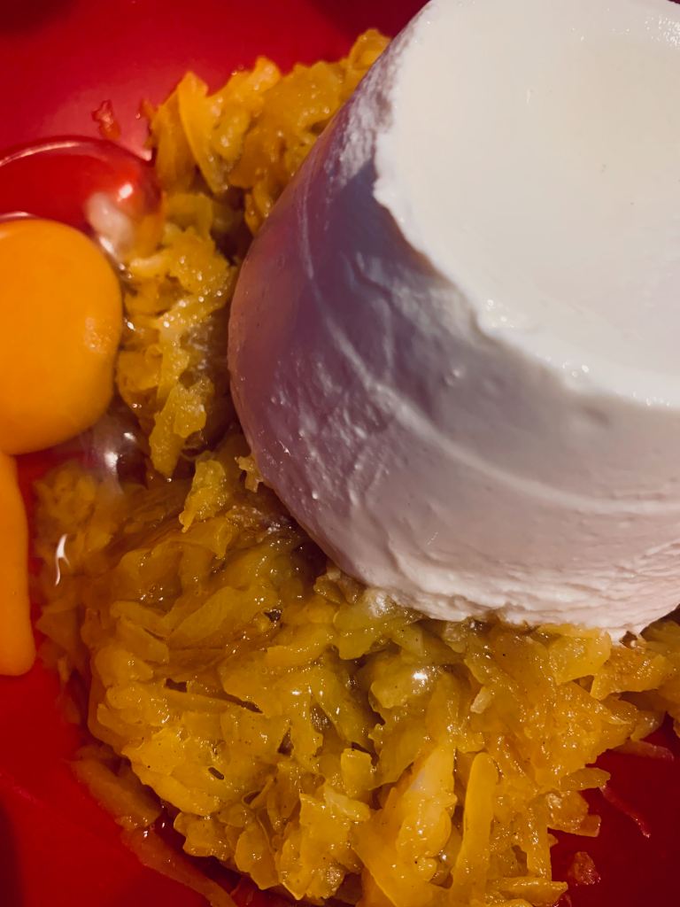 Den Kürbis in einer Pfanne etwas salzen und mit den Thymianzweiglein und 1 Esslöffel Olivenöl dünsten. In der Zwischenzeit die Ricotta mit dem Eiern und 3 Esslöffeln Parmigiano vermischen. Sobald der Kürbis weich ist, 3 Esslöffel bei Seite legen, und den Rest zur Ricotta geben, verrühren und mit Salz abschmecken.