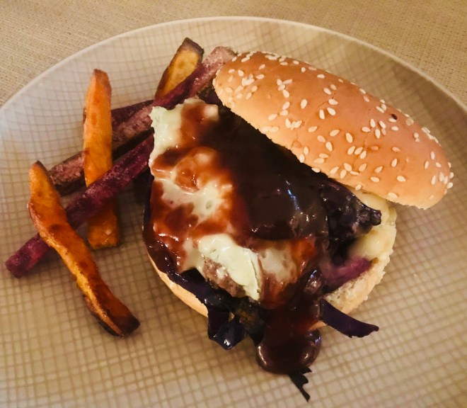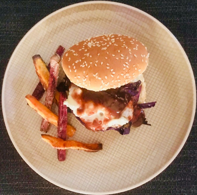 Dazu serviere ich Süsskartoffelfries.
