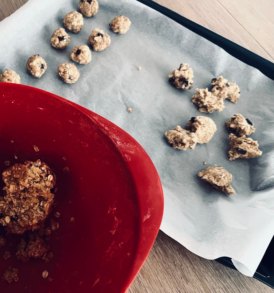 Den Backofen auf 160 Grad Umluft vorheizen, und die Kekse ca. 15 Minuten backen.