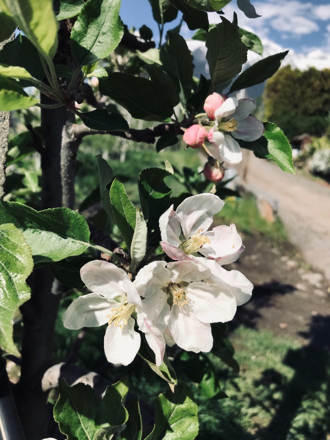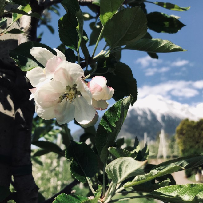 Die Apfelblüte kann je nach Strenge und Länge des Winters schon Ende März beginnen, je nachdem in welcher Höhenlage die Wiesen liegen, in milderen Gegenden wie Eppan oder im Meranerland beginnen sie meist früher als im höhergelegenem Vinschgau und Eisacktal. Der Blütentauber dauert dann maximal 1-2 Wochen und ist wirklich atemberaubend zu beobachten. Die weissrosa Blumentrauben verwandeln die Wiesen in ein Blütenmeer das von der Sinfonie summender Insekten begleitet wird.