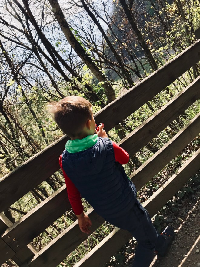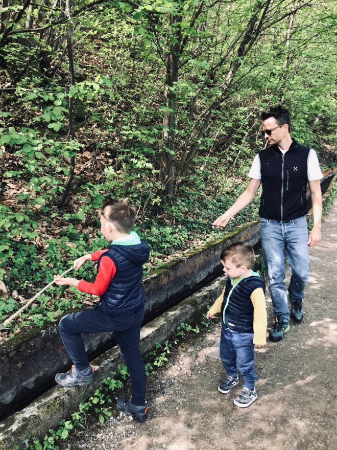 Der Waal wird durch Felstunnel und unter Brücken entlang geführt und bietet vorallem Kinder eine Menge Spass, unser kleines Vikingerschiff ist immer mit dabei, umsegelt von sonnengelben Löwenzahn und lindgrünen Blätter. Stöcke werden zu angeln und kleine Steine zu Kanonenkugeln.