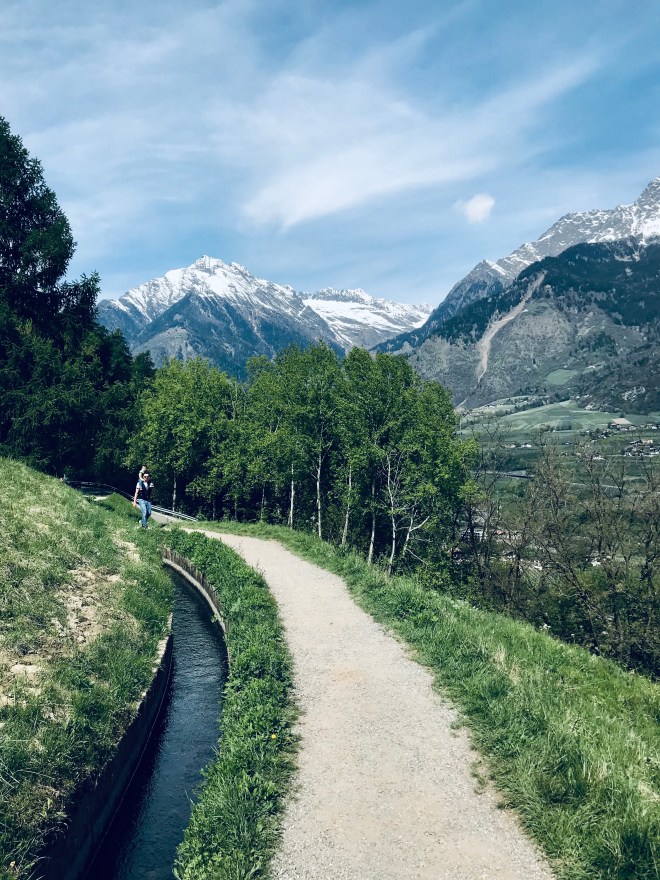 Dort befindet sich der Einstieg zum Marlinger Waalweg etwas versteckt hinter einer Imbissbude, einer der längsten Waalwege in Südtirol.