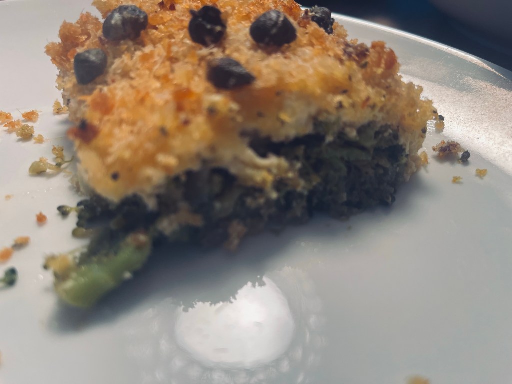 Den Brokkoli nun in eine ofenfeste Form geben und mit der Ricottamischung bestreichen.